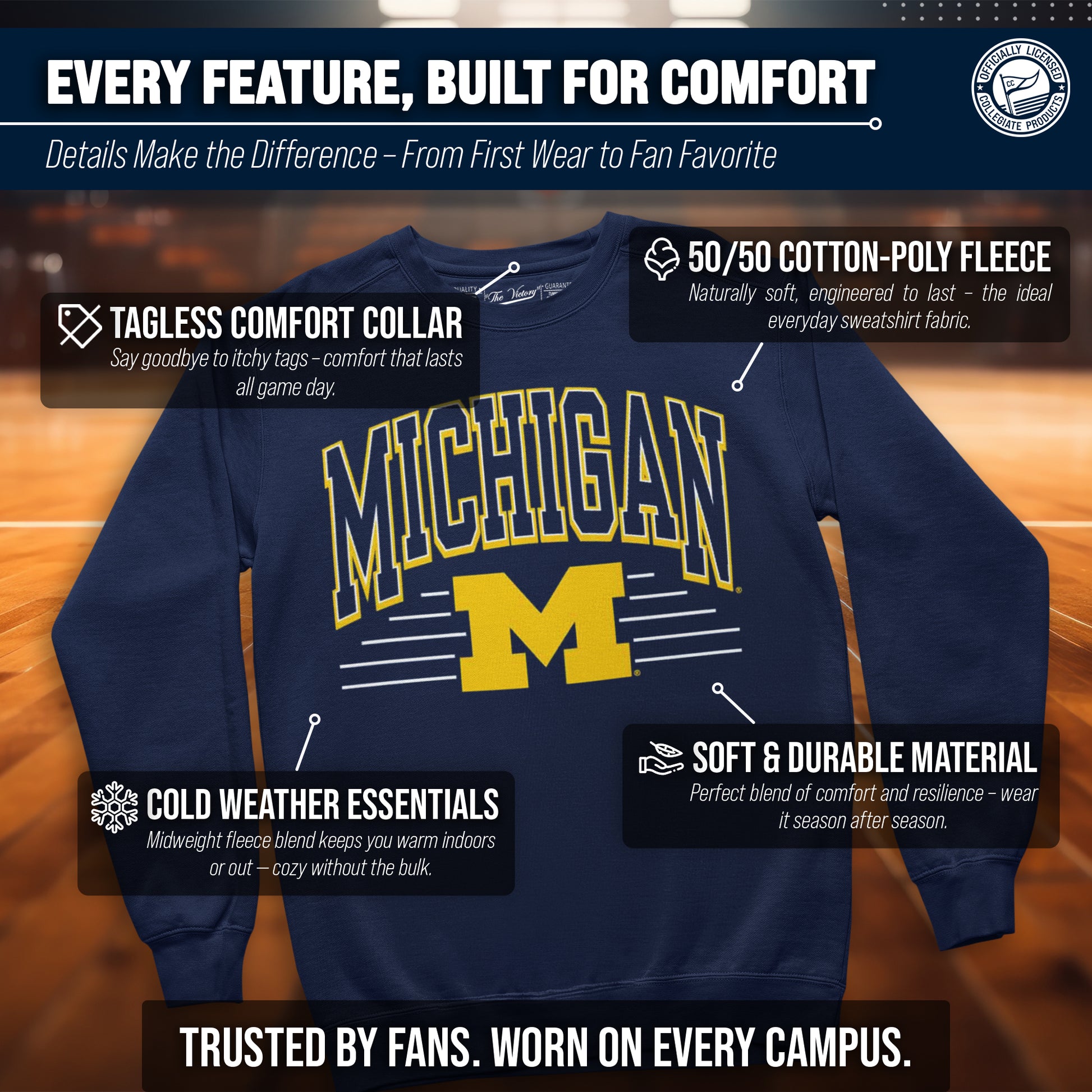 Show off your team spirit and stay warm in the NCAA Adult Unisex Overtime Classics Michigan Wolverines Crewneck Fleece Sweatshirt! This cozy sweatshirt is perfect for any Michigan fan, with its vibrant team colored design. Made from a comfortable cotton poly fleece fabric, this Wolverines sweatshirt features long sleeves, ribbed wrists and waistband, and will keep you cozy on those chilly days! But that's not all - you can wear this Michigan sweatshirt game after game without worrying about wear and tear. It's the perfect addition to your college team apparel collection, whether you're cheering on your team at the stadium or just lounging at home. It is the number one Michigan item you'll want to have on the next cold game day! So why settle for a plain old sweatshirt when you can show off your love for Michigan Wolverines in style? Get your NCAA Adult Unisex Overtime Classics Crewneck Fleece Sweatshirt today for yourself or any Wolverines fan in your life and be confident know that you are rocking the most authentic and official gear!