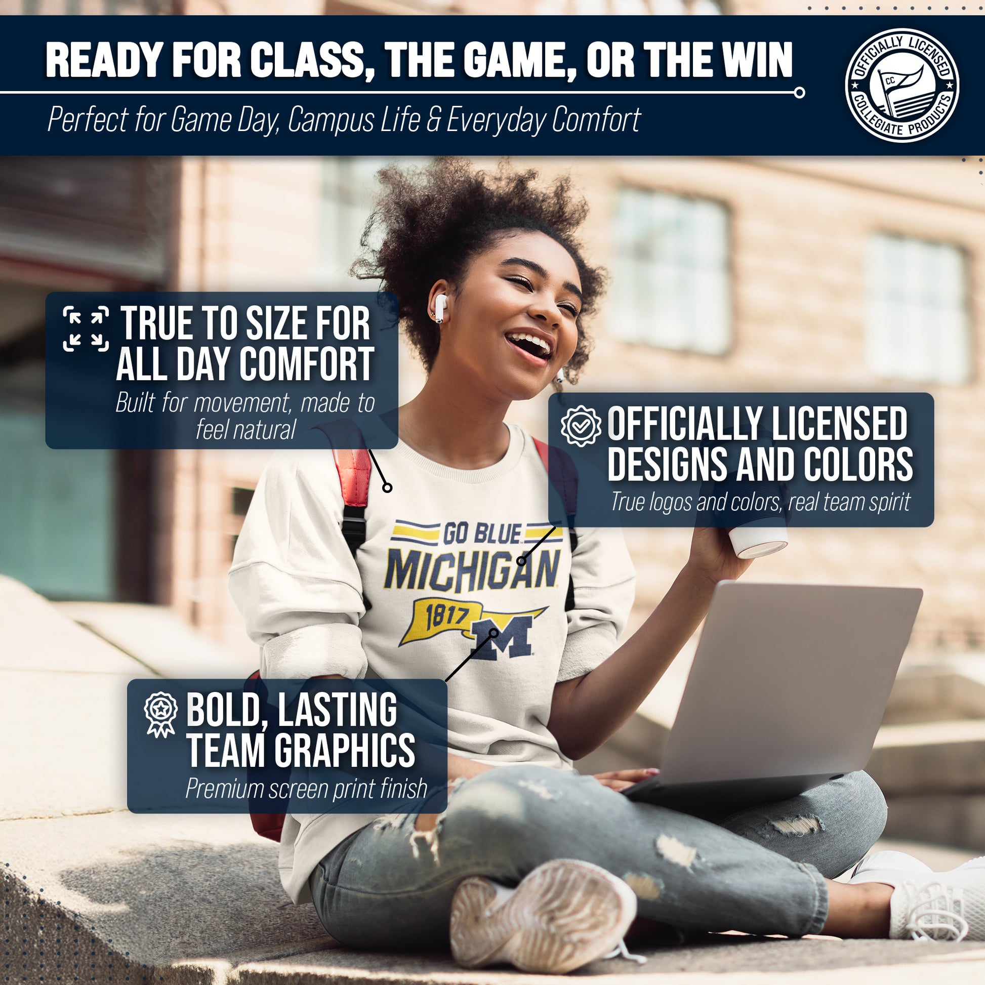 Show off your team spirit and stay warm in the NCAA Adult Unisex Varsity Club Pennant Michigan Wolverines Crewneck Fleece Sweatshirt! This cozy sweatshirt is perfect for any Michigan fan, with its vibrant colored pennant design. Made from a comfortable cotton poly fleece fabric, this Wolverines crewneck sweatshirt features long sleeves, ribbed wrists and waistband, and will keep you warm on chilly days! But that's not all - you can wear this Michigan sweatshirt game after game without worrying about wear and tear. It's the perfect addition to your college team apparel collection, whether you're cheering on your team at the stadium or just lounging at home. It is the number one Michigan item you'll want to have on the next cold game day! So why settle for a plain old sweatshirt when you can show off your love for Michigan Wolverines in style? Get your NCAA Adult Unisex Varsity Club Pennant Crewneck Fleece Sweatshirt today for yourself or any Wolverines fan in your life and be confident know that you are rocking the most authentic and official gear!