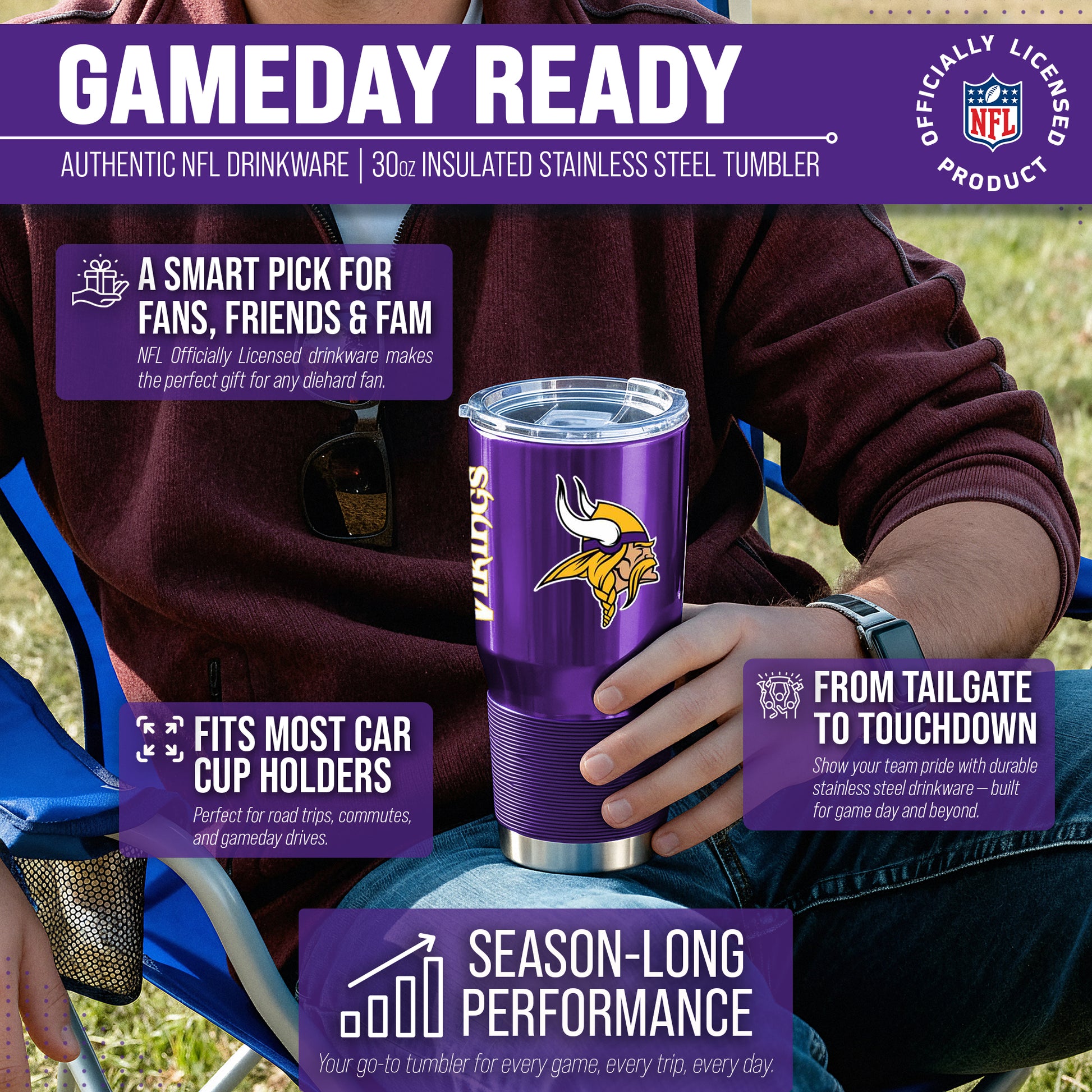 Minnesota Vikings NFL 30oz Gameday Stainless Steel Tumbler - Purple