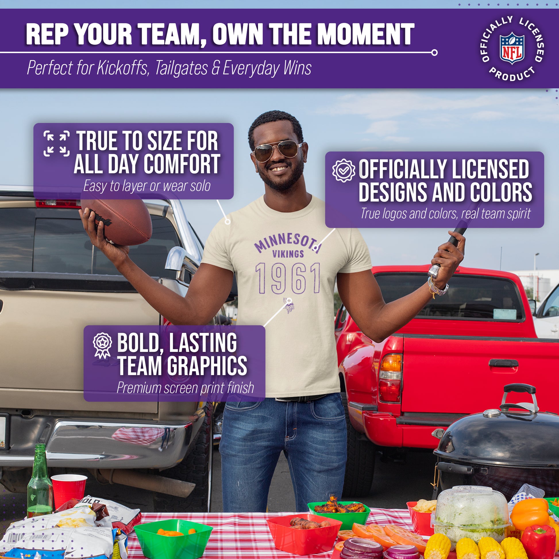 Minnesota Vikings NFL Adult Big Date Tag-Less T-Shirt - Natural