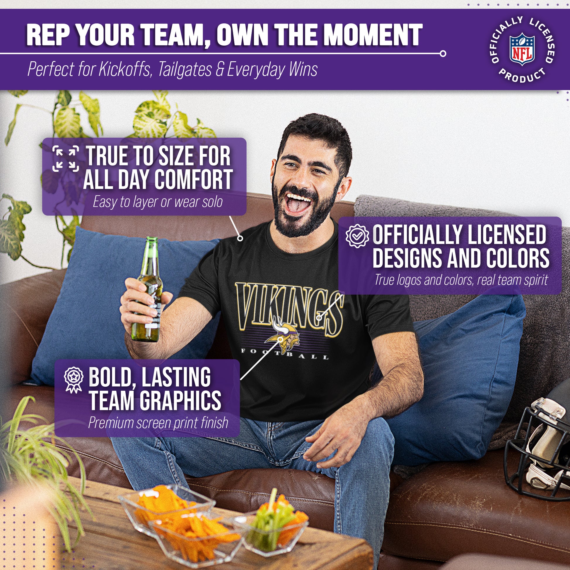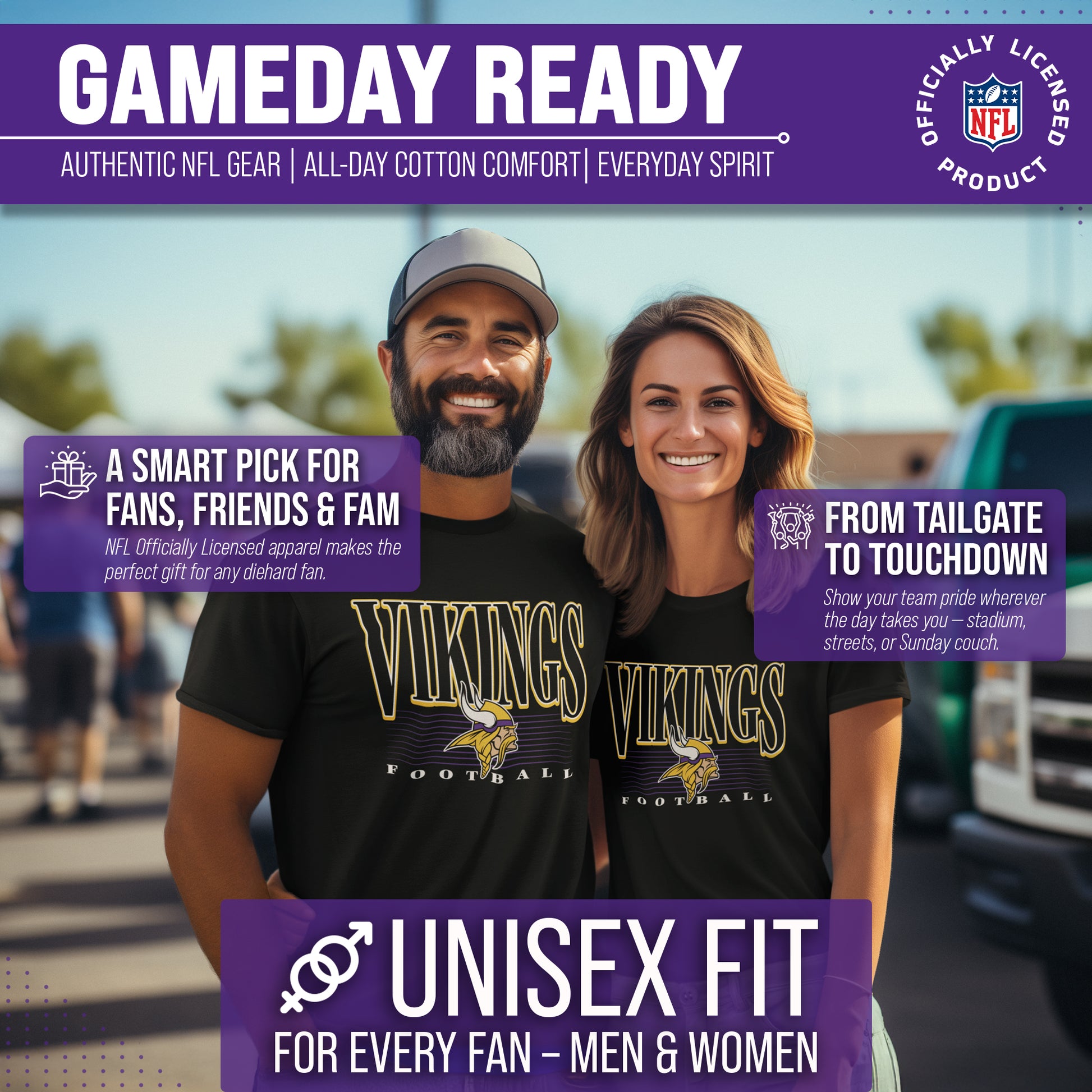 Show off your team spirit in style with our Team Fan Apparel Minnesota Vikings NFL Overtime Blueprint Tag-Less T-Shirt! Made for both men and women, this unisex t-shirt is the perfect addition to any football fan's wardrobe. With its soft and comfortable cotton blend fabric, you'll love wearing it to games or just lounging at home. The tag-less design ensures maximum comfort without any annoying tags scratching at your neck. Featuring a colorful logo with outlined text of your favorite team, this shirt will make you stand out from the crowd and show off your die-hard fandom. It comes in multiple sizes, so you can choose the one that fits best & represents your team spirit. Whether you're cheering on your Vikings at the stadium or watching from home, our NFL Overtime Blueprint Tag-Less T-Shirt is a must-have for all fans! So grab yours today and support your team in comfort and style. Go team!