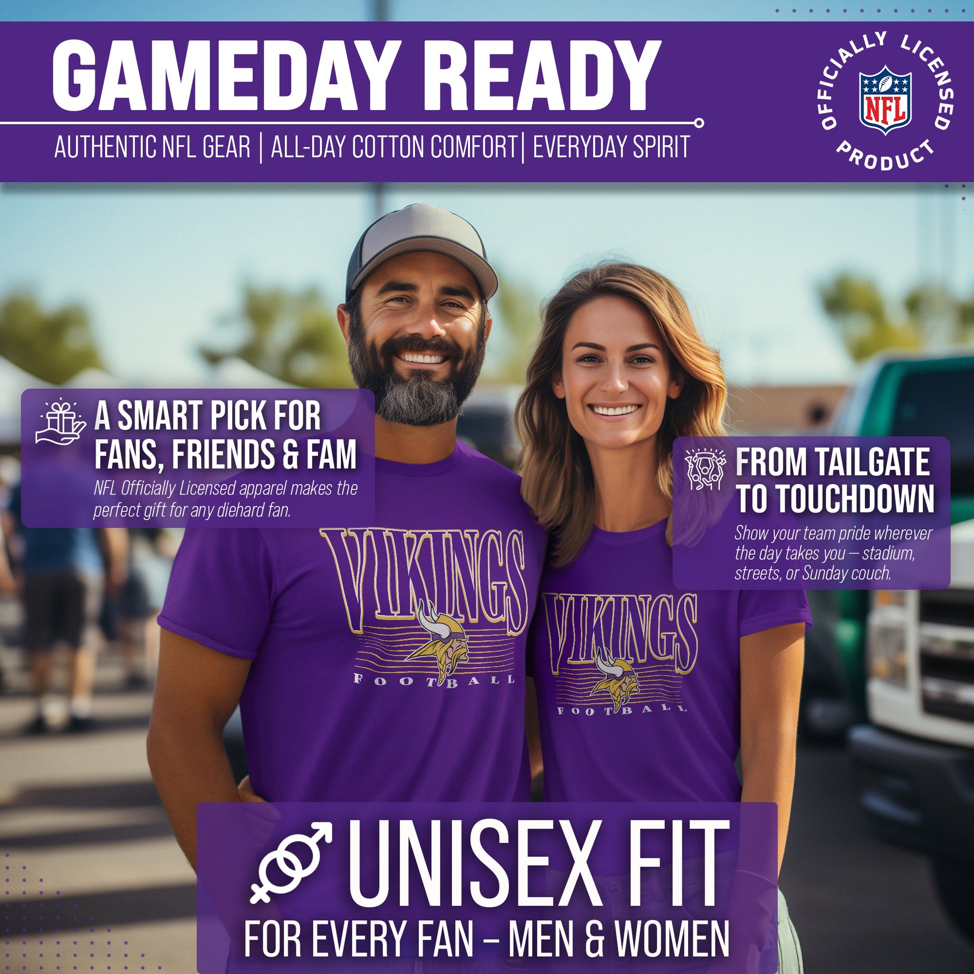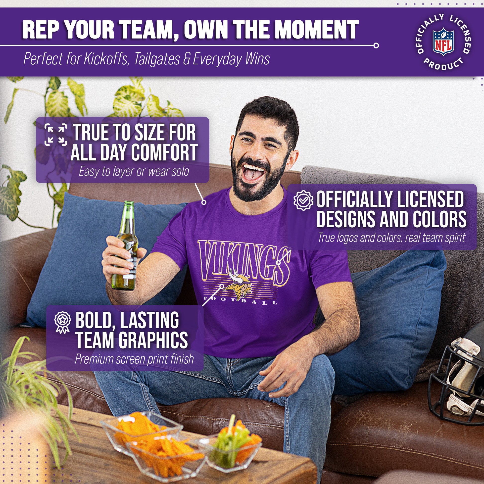 Show off your team spirit in style with our Team Fan Apparel Minnesota Vikings NFL Overtime Blueprint Tag-Less T-Shirt! Made for both men and women, this unisex t-shirt is the perfect addition to any football fan's wardrobe. With its soft and comfortable cotton blend fabric, you'll love wearing it to games or just lounging at home. The tag-less design ensures maximum comfort without any annoying tags scratching at your neck. Featuring a colorful logo with outlined text of your favorite team, this shirt will make you stand out from the crowd and show off your die-hard fandom. It comes in multiple sizes, so you can choose the one that fits best & represents your team spirit. Whether you're cheering on your Vikings at the stadium or watching from home, our NFL Overtime Blueprint Tag-Less T-Shirt is a must-have for all fans! So grab yours today and support your team in comfort and style. Go team!