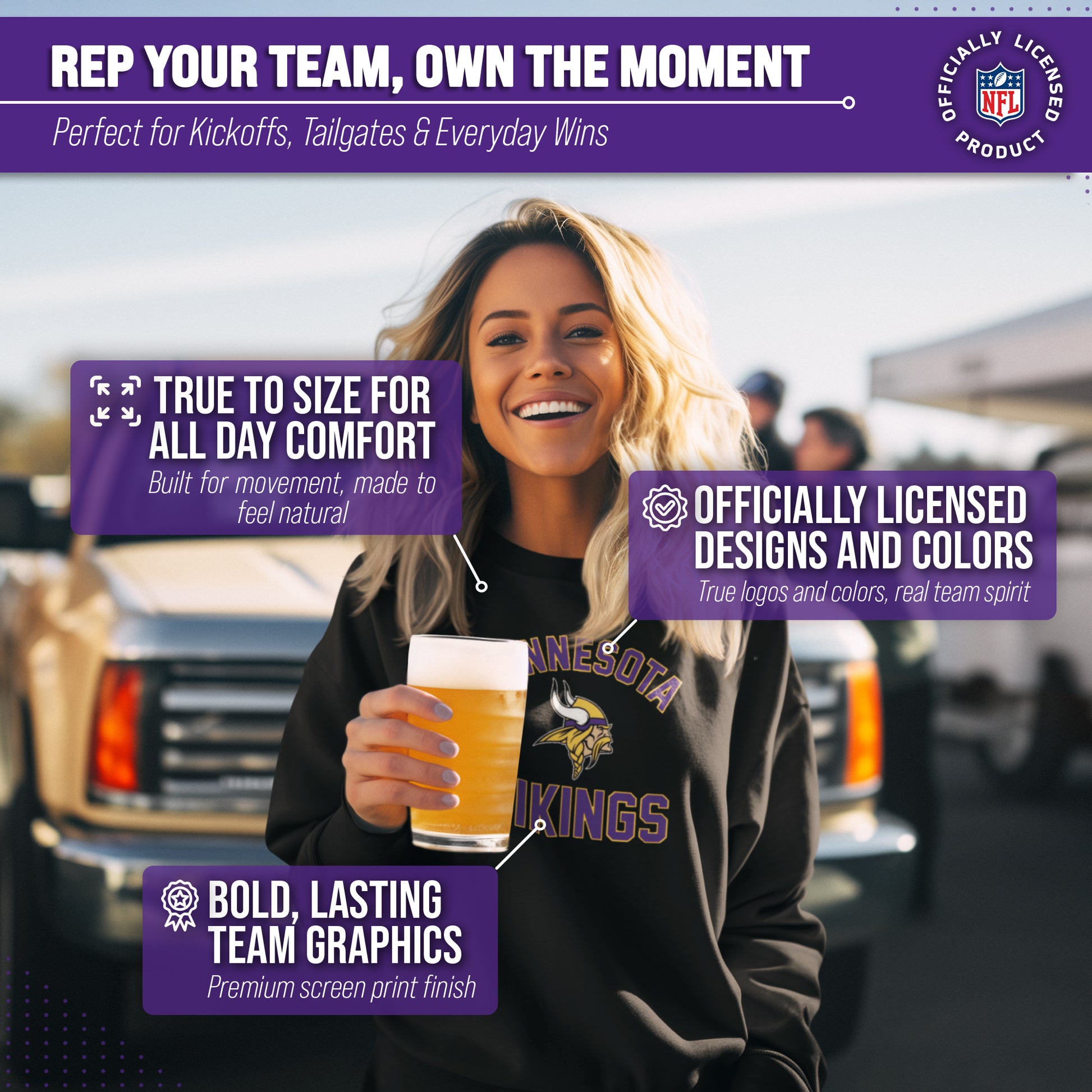 This adult Gameday Minnesota Vikings football crewneck is the ideal sweatshirt to wear on gameday. Our crewneck sweatshirt is comfortable, runs true to size, and is great for showing team pride all year long! This is the perfect Minnesota sweatshirt for both men and women. Our Minnesota Vikings team colored crewneck sweatshirts are the perfect fan apparel for tailgates and sports games. The lightweight crewneck pullover is made of air jet yarn for a softer feel and reduced pilling, which means your crewneck sweatshirt will look new for years to come. You don't have to worry about the Minnesota graphics fading on your crewneck, either. The pullovers are made with thermal printed graphics that are high definition, true team color, and resist fading! This Minnesota sweatshirt is ideal for warm or cold weather, which means you can wear it not only all football season, but all year long! Our pro football crewneck sweatshirt features 1x1 rib with spandex for enhanced stretch and recovery. This Minnesota crewneck sweatshirt has double-needle stitching at shoulders, armholes, neck, waistband, and cuffs. Our comfortable crewneck pullover is made from a cotton poly fleece blend. This tagless sweatshirt ensures the most comfortable fit for men and women. The classic fit of this sweatshirt makes this Minnesota Vikings crewneck that perfect pullover for Minnesota men and women fans. Our pro Minnesota Vikings pullover sweatshirts for men and women make the best Minnesota gift. Minnesota Vikings apparel is the perfect birthday gift for any football fan. This Minnesota Vikings football crewneck sweatshirt is perfect for tailgating, stadium fun, or watching the game at home.