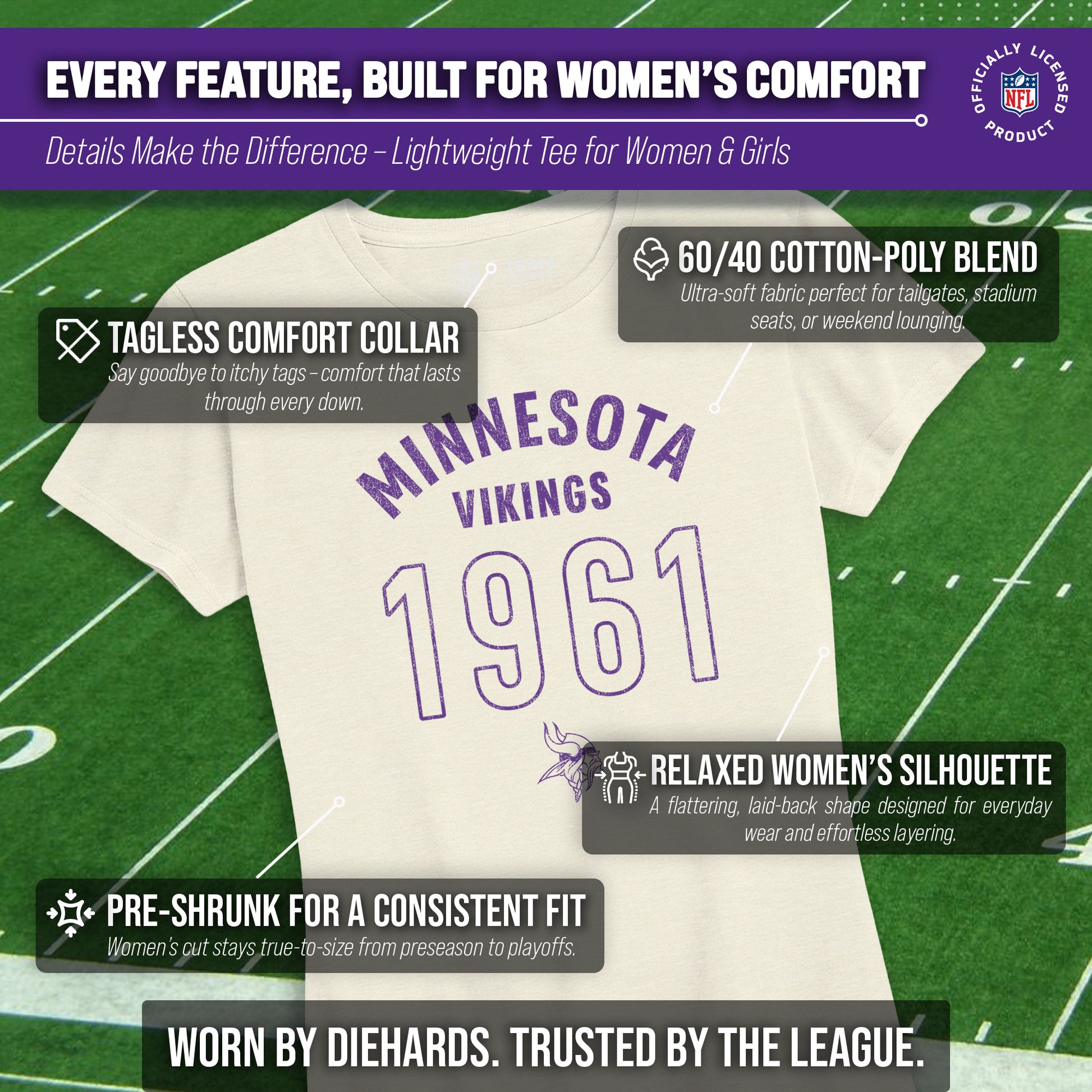 Minnesota Vikings NFL Womens Big Date Tag-Less T-Shirt - Natural