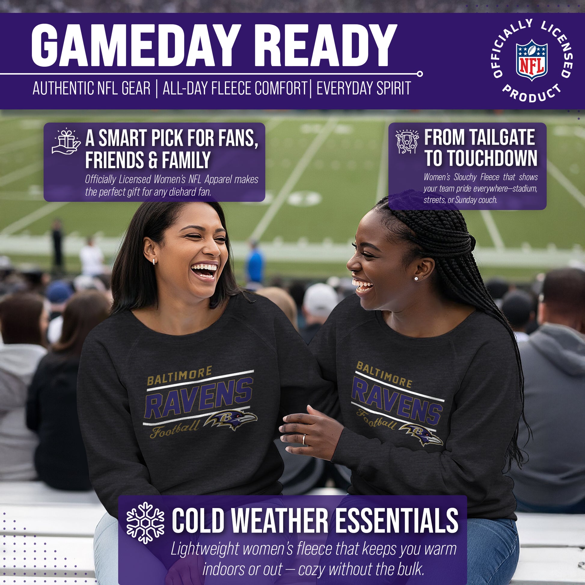 Our officially licensed Minnesota Vikings long sleeve crew neck pullover is super comfortable, runs true to size, and is great for showing off your Vikings pride. The high-quality thermal printed logo will look fresh after years of wear, making it a great alternative to wearing a Minnesota Vikings womens jersey. Our womens long sleeve Gameday crewneck has a relaxed fit for a casual, comfortable look. The long sleeve Vikings crew will look great with shorts at tailgates in warmer months, or with jeans or leggings when it gets cooler. Layer it with a hoodie or even a Minnesota football jersey when the weather gets cold. Available in plus sizes up to 3XW, this is a Minnesota Vikings pullover that women who are plus size or straight size will feel comfortable in. If you're looking to give the gift of ladies Vikings apparel, our long sleeved Minnesota Vikings Slouchy Crew is the perfect gift. Officially licensed to ensure no counterfeit designs or colors, these Minnesota crews for women are perfect for super fans. Made from a cotton poly blend to keep you comfortable, the womens raglan long sleeve Gameday Slouchy Crew will definitely become one of your favorite pieces of Minnesota Vikings apparel.