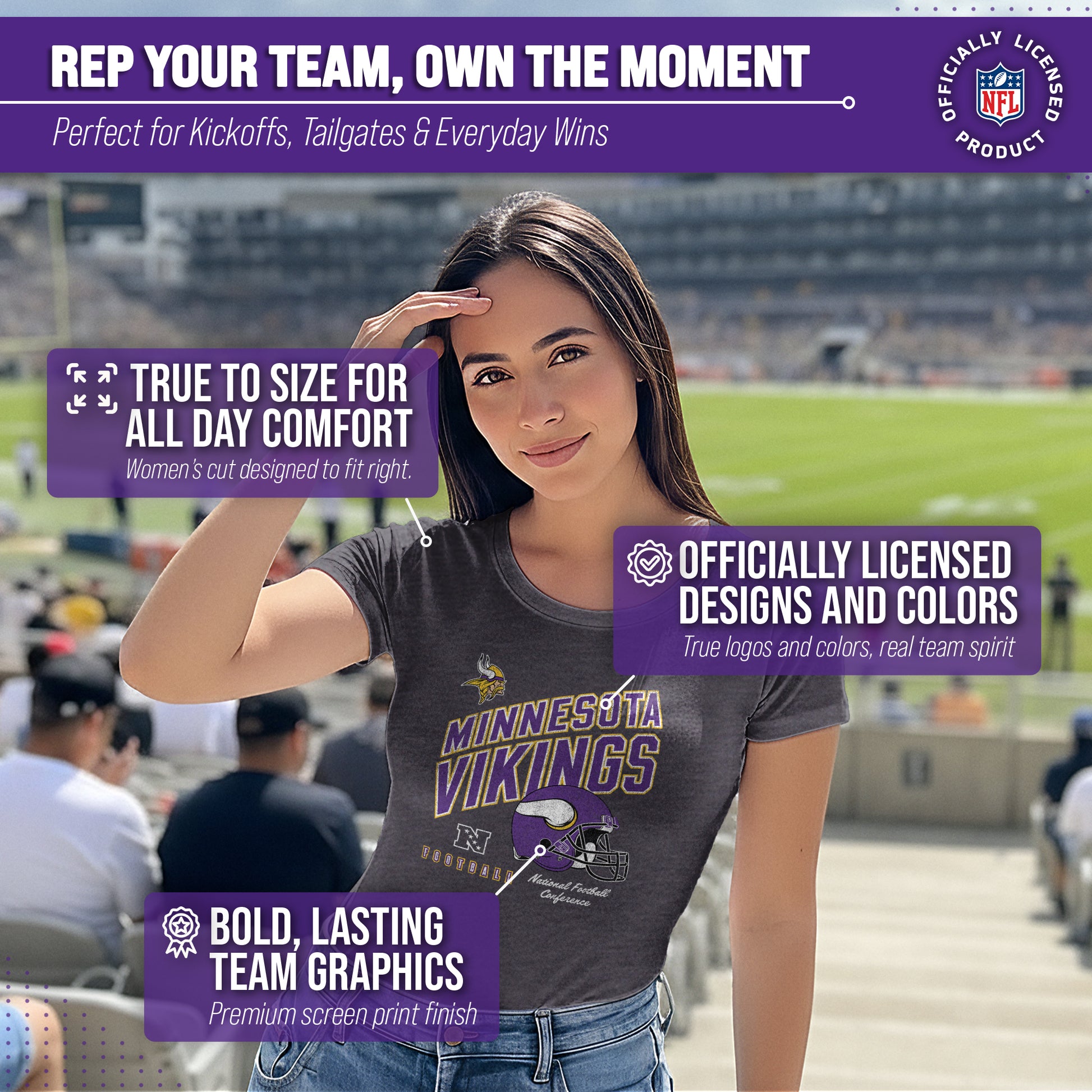 Minnesota Vikings NFL Womens Distressed Helmet Tag-Less Soft T-Shirt - Heather Charcoal