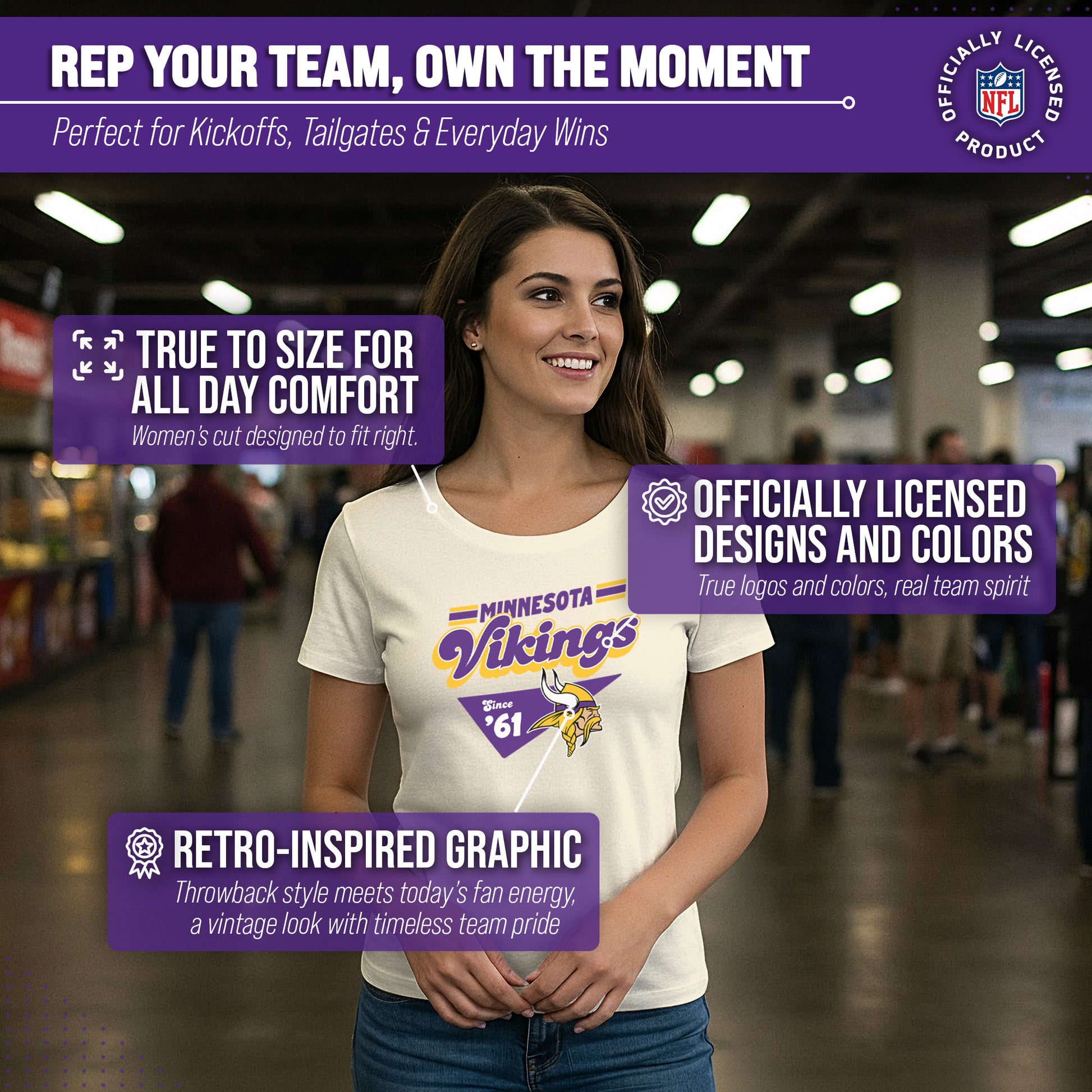 Minnesota Vikings NFL Womens Vintage Charm Tag-Less Soft T-Shirt - Birch