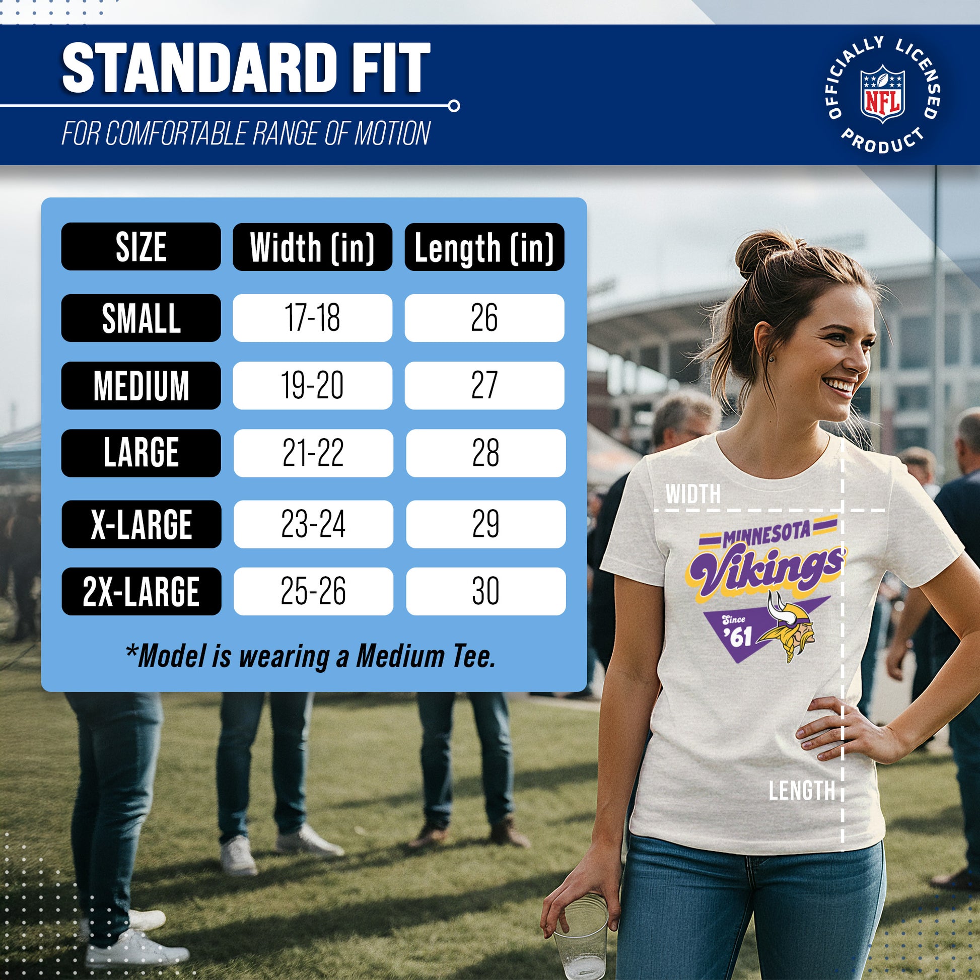 Calling all ladies! Get ready to rock game day with the Women's Team Fan Apparel Vintage Charm T-Shirt! This comfortable and stylish Minnesota Vikings womens tee is perfect for any female football fan, whether you're cheering on your favorite team at the stadium or watching from home. Made from a super soft cotton fabric , this shirt will keep you cool and comfortable all game long. The pennant design, team name, and team logo adds a touch of retro flair, while the tag-less design ensures itch-free wear. Whether you're a die-hard fan or just love a good simple look, this shirt is perfect for showing off your team spirit. Available in a wide range of women's sizes, it's suitable for all shapes and sizes! The birch-colored garment will match well with everything in your closet! So grab your girlfriends and get ready to cheer on your team in style with the Women's Team Fan Apparel Vintage Charm T-Shirt!