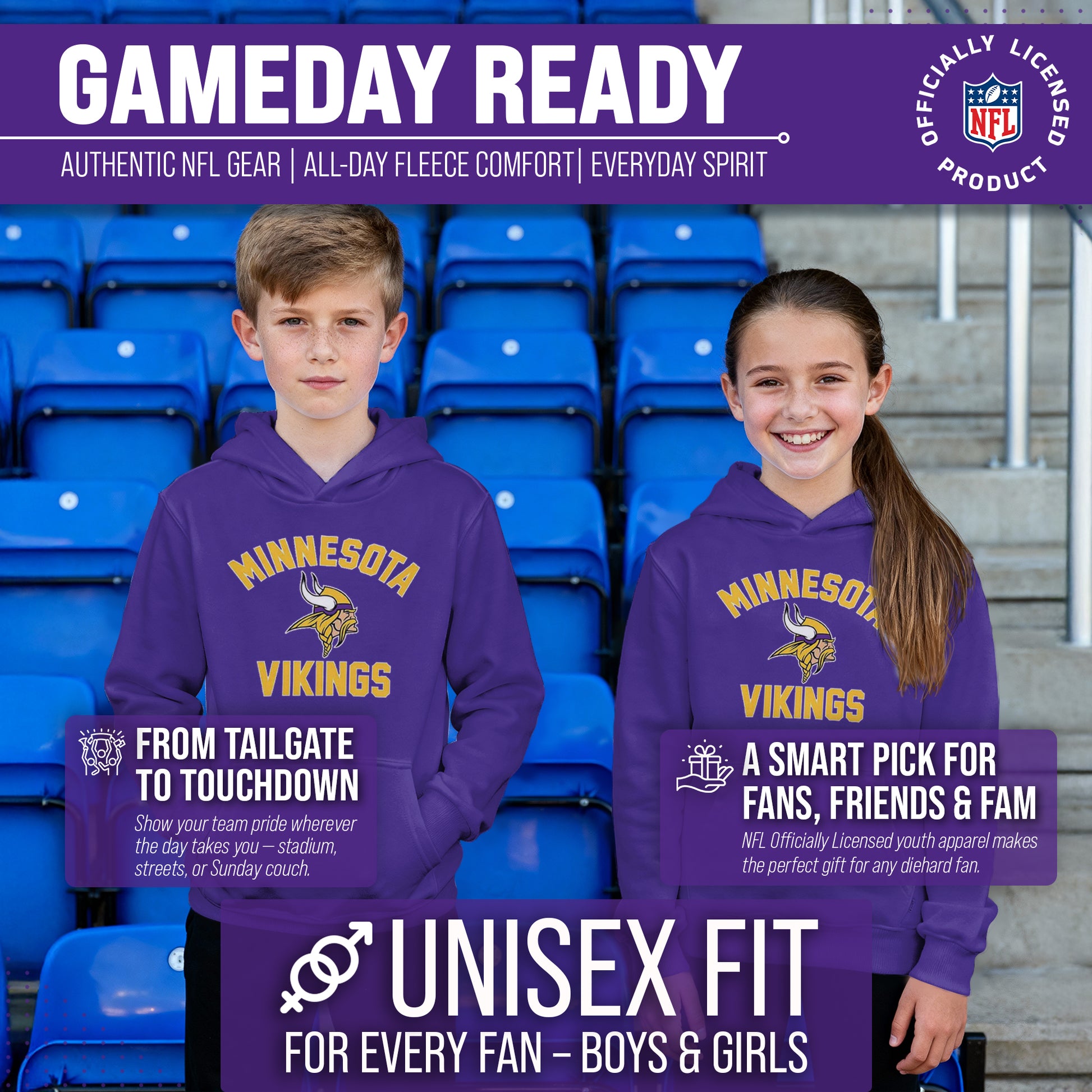 Minnesota Vikings NFL Youth Gameday Hooded Sweatshirt - Purple