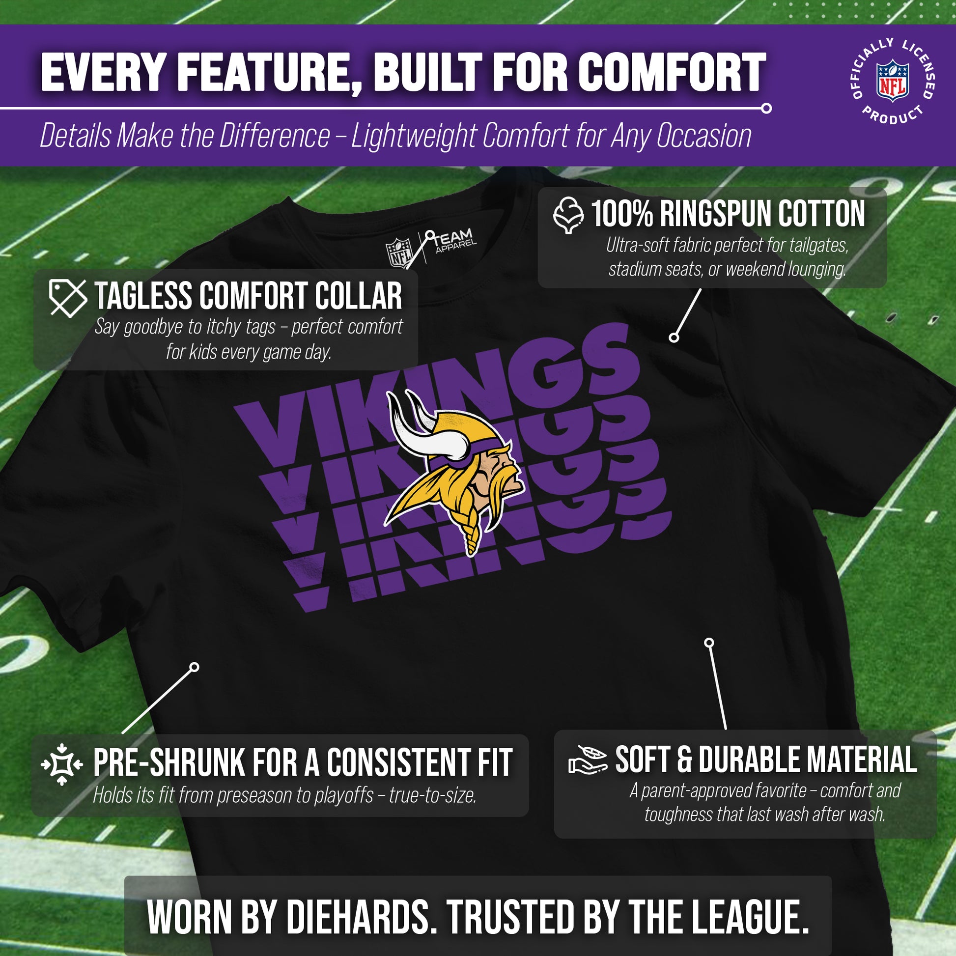 Minnesota Vikings NFL Youth Repeating Logo Football T-Shirt Unisex Tag Free Comfortable - Black