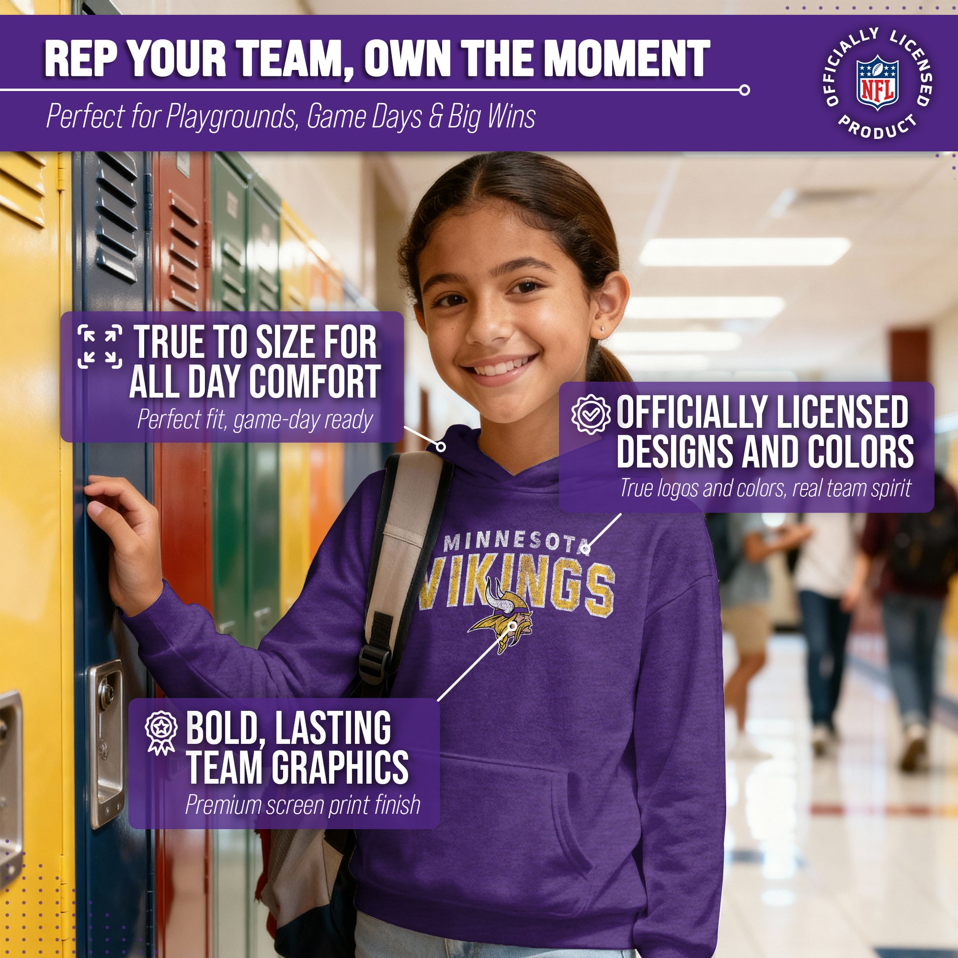 Minnesota Vikings NFL Youth Starting Fresh Hoodie- Pro Football Sweatshirt for Boys and Girls - Purple
