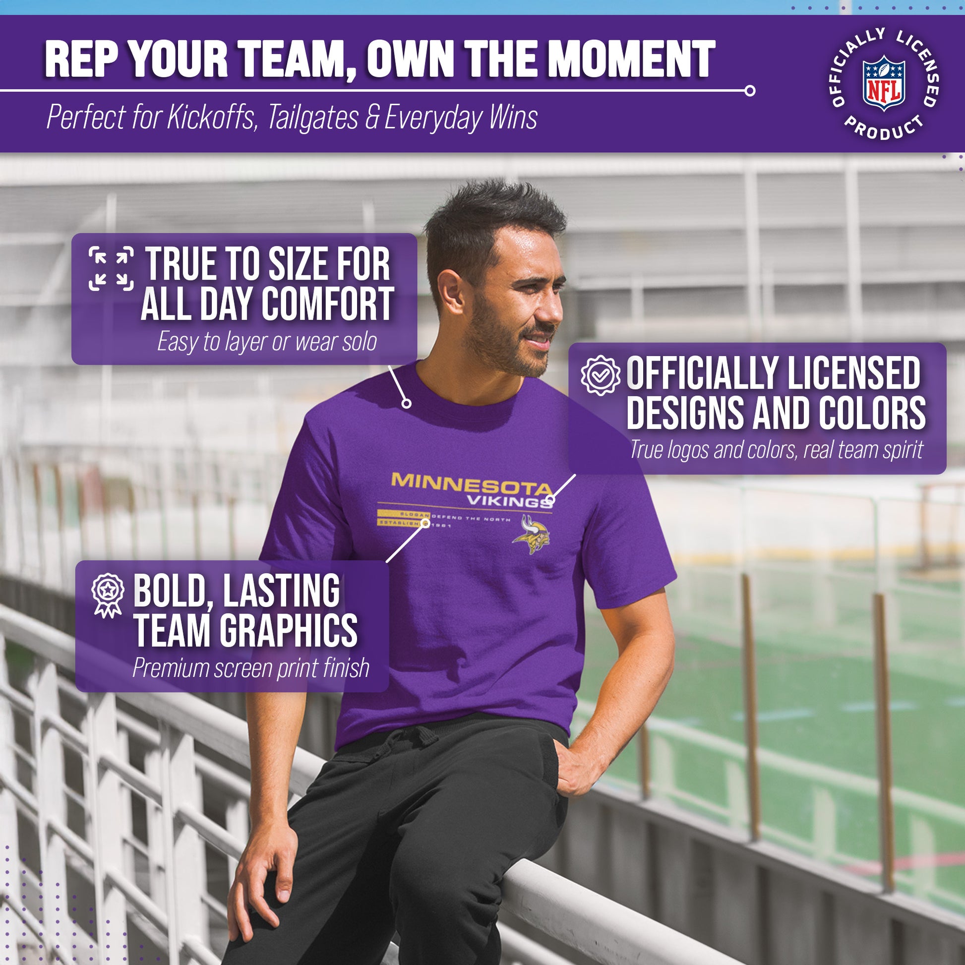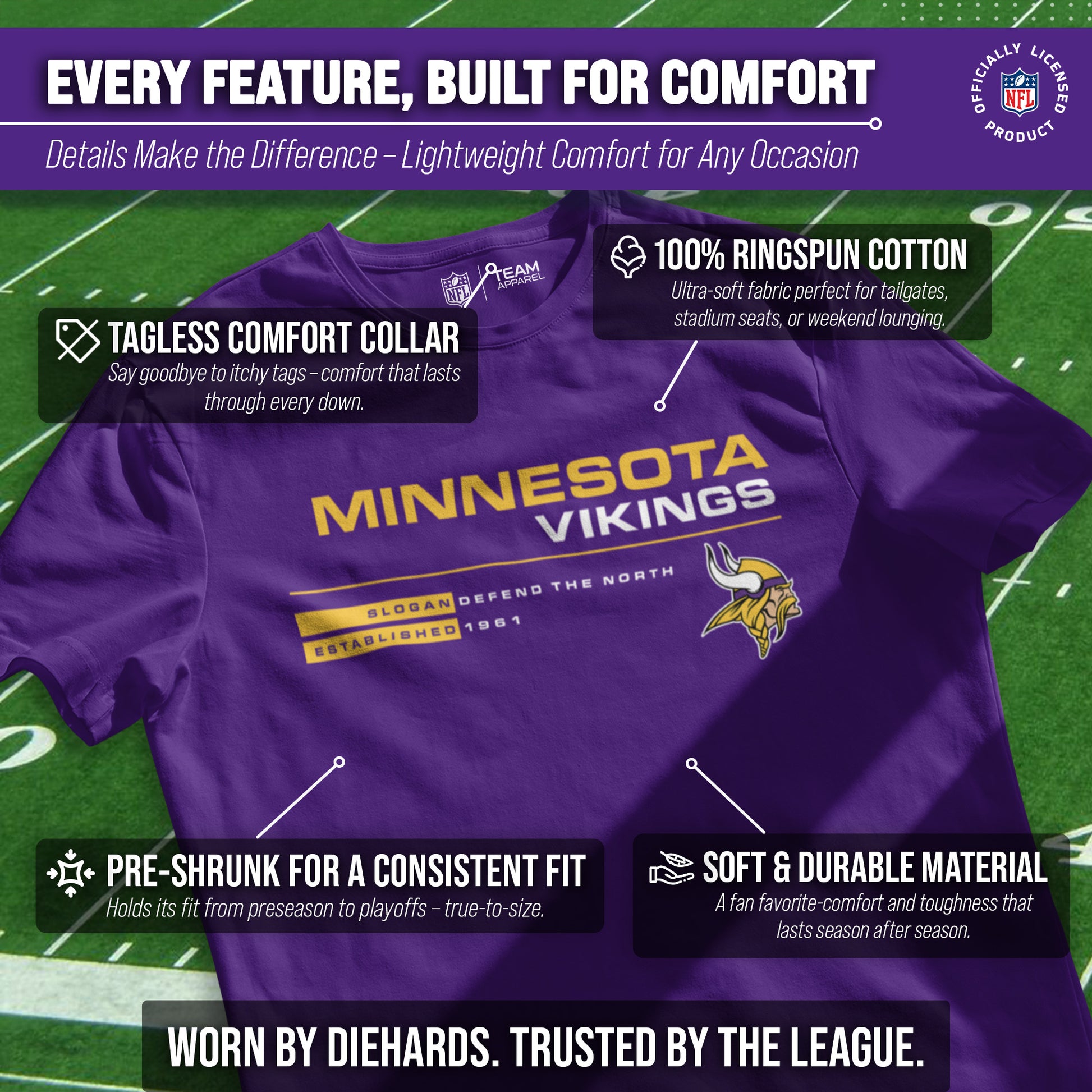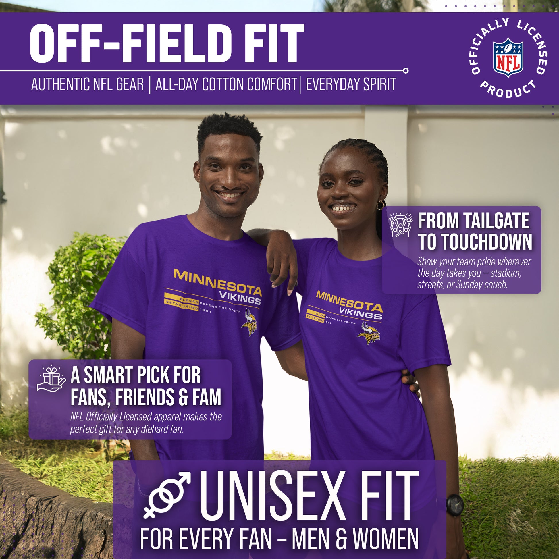 Score with Team Fan Apparel, the ultimate destination for officially licensed NFL apparel for men and women. We use only the highest-quality screen printing techniques to bring you the most comfortable, durable, and stylish clothing possible. Go ahead and show your team pride at the big game or any time! This premium t-shirt fits both male and female adults and comes in small, medium, large, XL, and XXL. So needless to say, it fits Minnesota Vikings fans of all types! Maybe you aren't a Vikings fan but you know someone who is? Don't worry! This high-quality t-shirt is soft, lightweight, breathable, and a GREAT gift for any birthday, anniversary, Father's Day, Mother's day, you name it! So, if you want to stand out as the #1 fan at the next big game or watch party, you're going to want to be wearing one of these football t-shirts.
