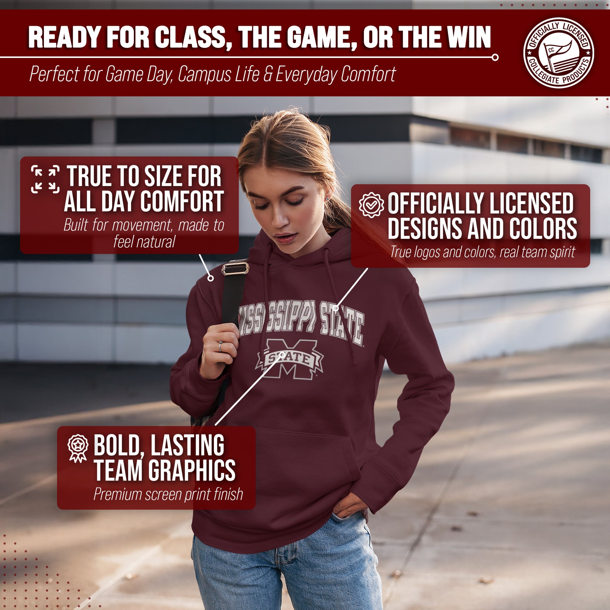 Score with Campus Colors, the ultimate destination for officially licensed college apparel for men and women. Design and printed in the USA, we use only the highest quality screen printing techniques to bring you the most comfortable, durable, and stylish clothing possible. Go ahead and show your team pride at the big game or any time! This premium-quality Gameday hoodie is super comfy, fits both male and female adults, and comes in small, medium, large, XL, and XXL. So needless to say, it fits Mississippi State Bulldogs fans of all types! Maybe you aren't a Mississippi State fan but you know someone who is? Don't worry! This high-quality sweatshirt is soft, lightweight, breathable and a GREAT gift for any birthday, anniversary, Father's Day, Mother's day, you name it! So, if you want to stand out as the #1 Bulldogs fan at the next big tailgate party, homecoming parade, or watch party, you're going to want to be wearing one of these Gameday sweatshirts.
