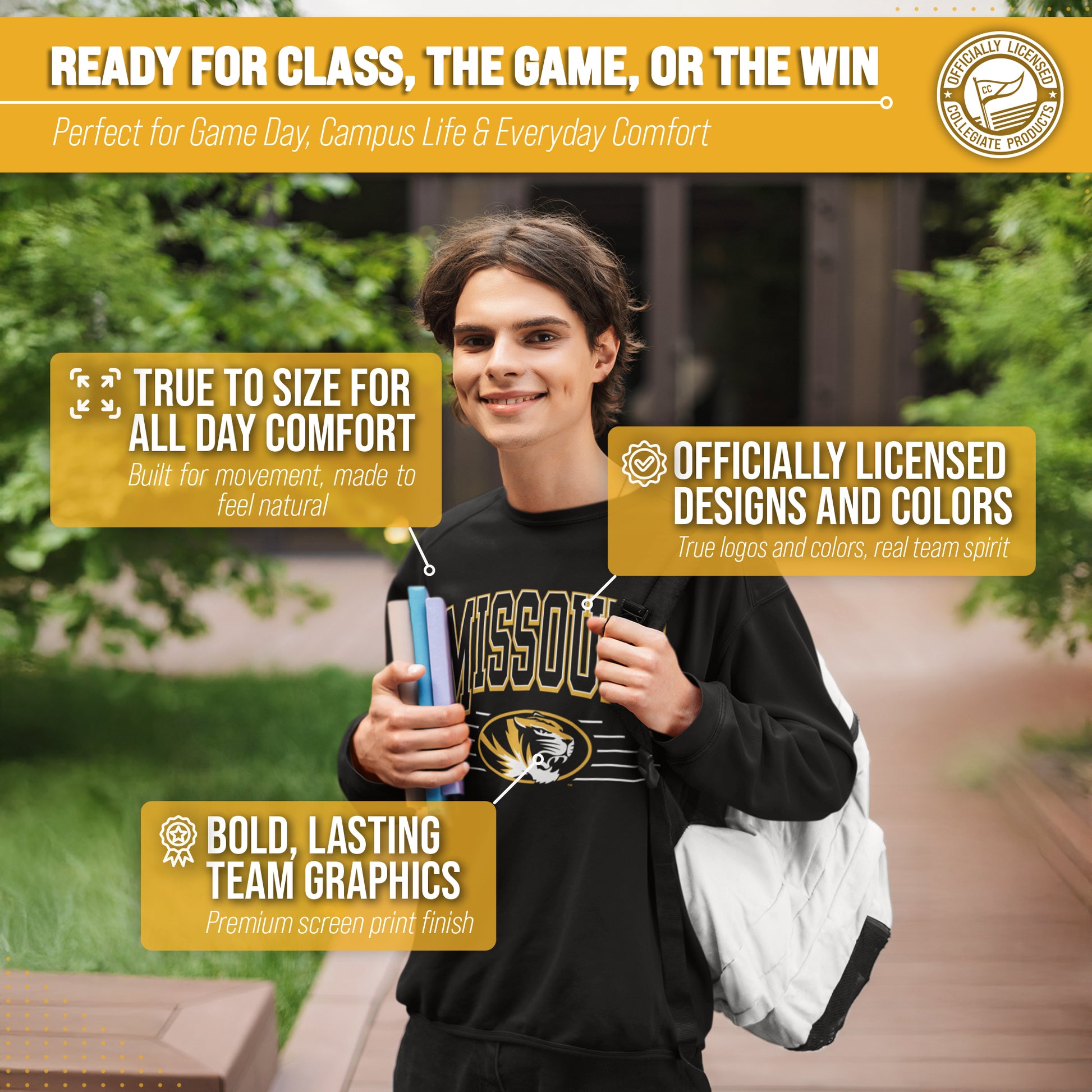 Missouri Tigers NCAA Adult Unisex Overtime Classics Crewneck Fleece Sweatshirt - Black