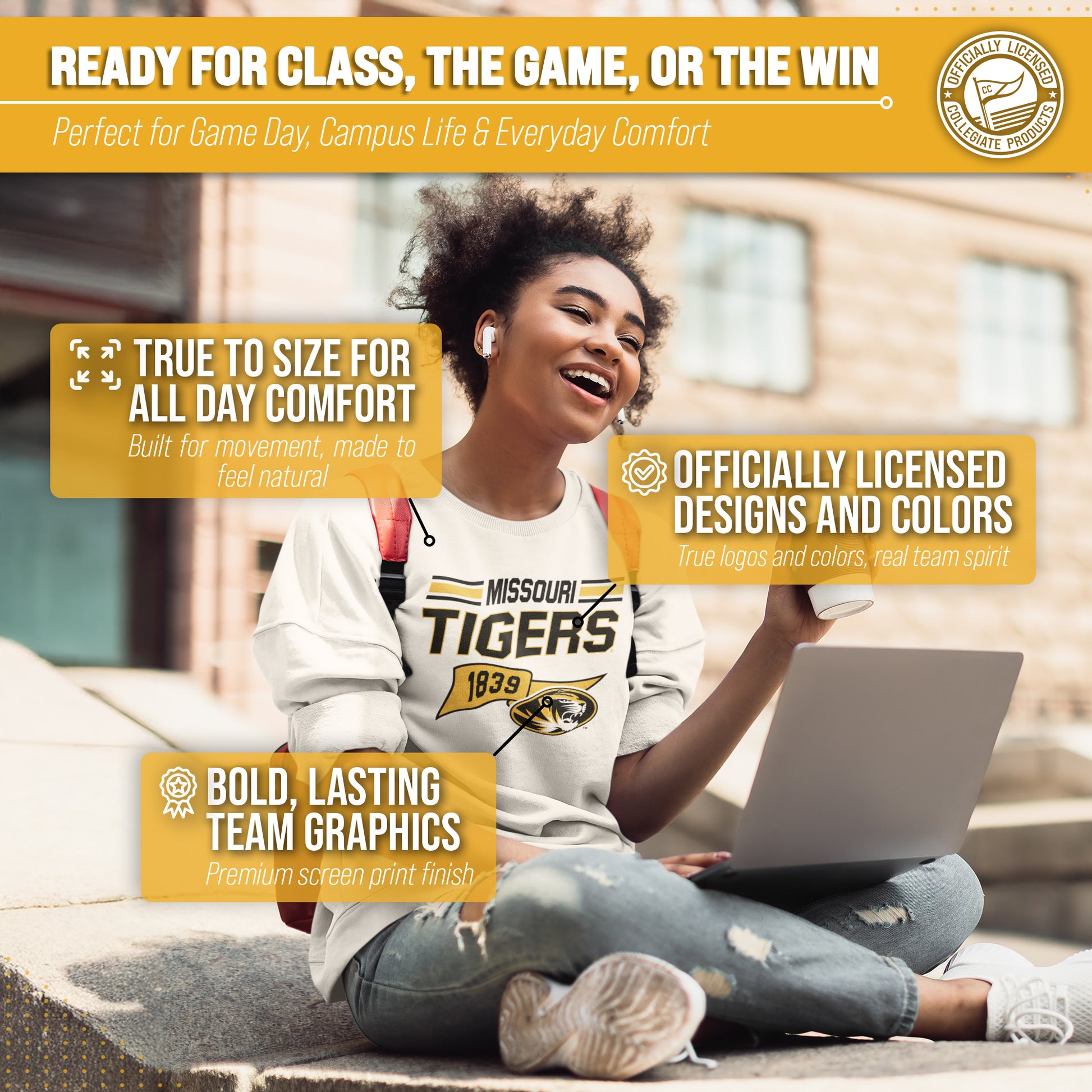 Missouri Tigers NCAA Adult Unisex Varsity Club Pennant Crewneck Fleece Sweatshirt - Off White