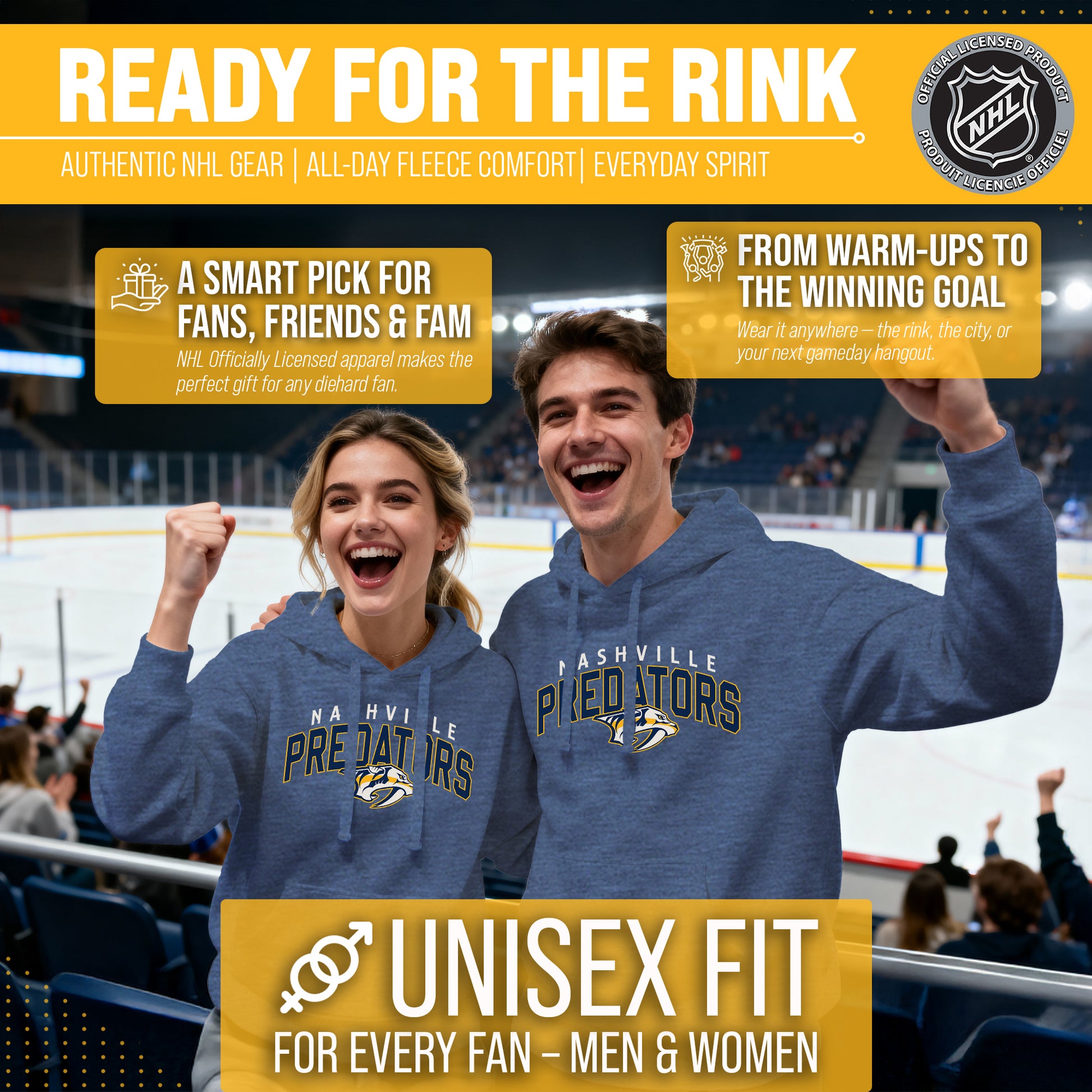Stay warm and show off your team spirit with the NHL Nashville Predators Powerplay Hooded Sweatshirt. Available in various team colors, this 50/50 cotton poly fleece blend sweatshirt features a vintage seasoned look, drawstring hood, front pouch pocket, and screen printed graphics. Classic fit and tag-free for maximum comfort. Perfect for any hockey fan, and makes a great graduation gift, birthday gift, father's day gift, Christmas gift, and more. This premium-quality hockey hoodie fits both male and female adults and comes in small, medium, large, XL, and XXL. So needless to say, it fits Nashville Predators fans of all types! Design and printed in the USA, we use only the highest quality screen printing techniques to bring you the most comfortable, durable, and stylish clothing possible. Go ahead and show your team pride at the big game or any time!