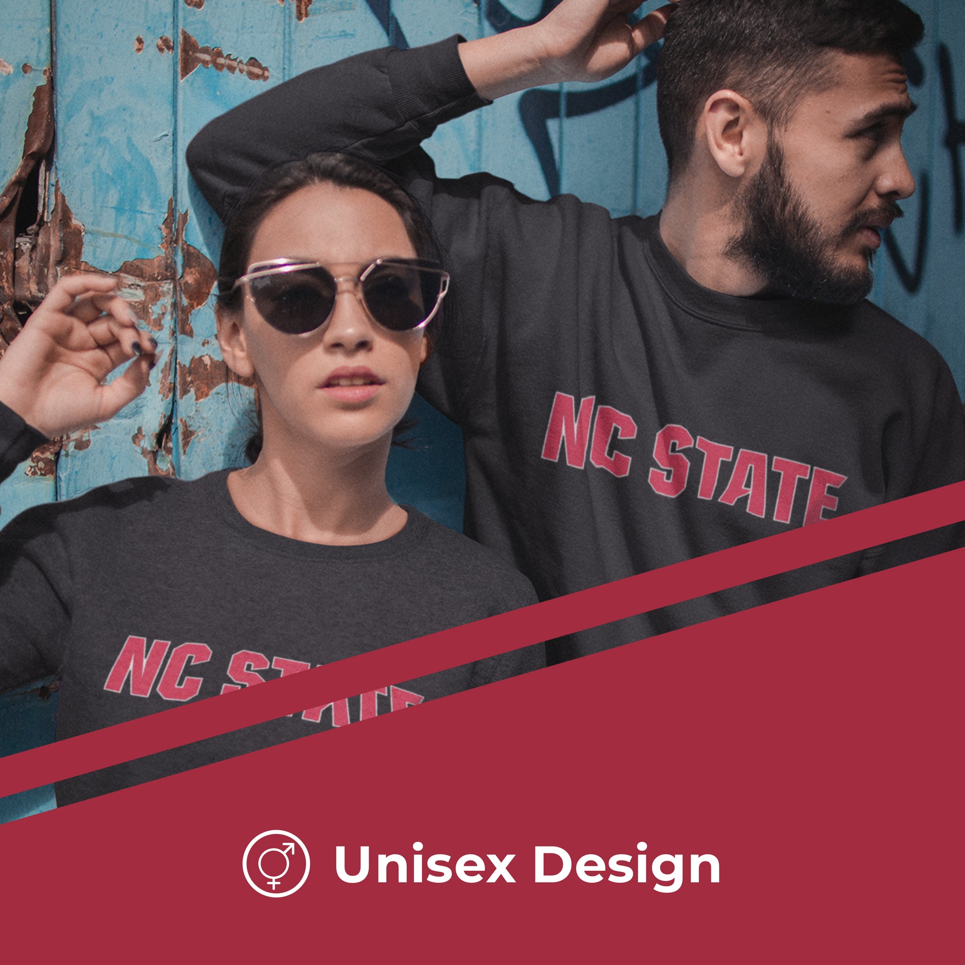 Our Charcoal Gameday Crewneck Sweatshirt is a college crewneck sweatshirt with a warm and toasty 9 oz fleece lining. It's the very best of NC State Wolfpack apparel, plain and simple. Gear up for your school's cold weather football or hockey game with confidence. Or, for women, bring it with you to basketball games and tie it around your leggings in case the arena is a little chilly. Our college crew neck sweatshirts for men and women are super comfortable, run true to size, and are great for showing your school pride all year long. Plus, the unisex fit is ideal for both men and women and works as an oversized sweatshirt for kids. College crewnecks for men and women feature your school's screen-printed university wordmark will stay crisp and clear, wear after wear. All colors and fonts are officially licensed and are of the highest of quality, it even comes with an officially licensed tag. Features: ribbed cuffs and waistband. This college sweatshirts crew in particular is perfect for tailgates, games, and showing off your school spirit. Gameday crewneck NC State Wolfpack sweatshirts make a great birthday, Christmas (or any other holiday), or graduation gift for any college student, upcoming high school or college graduate, alumni, or college sports fan. Gameday charcoal crewneck is essential collegiate apparel for protecting yourself and your loved ones from the elements. The fleece material will keep you warm through the colder months, and the no-zip design allows you to pullover and feel embraced like a big oversized blanket. The NC State Wolfpack charcoal crew necks are pre-shrunk and are made from a dual blend of 50% cotton and 50% polyester that is ideal for that tailgate or game day when the temperature drops. Pair with your other favorite NC State game day apparel! Say goodbye to cheap sweatshirts. Our charcoal college sweatshirts for women and men help you gear up and get ready to cheer your team to victory.
