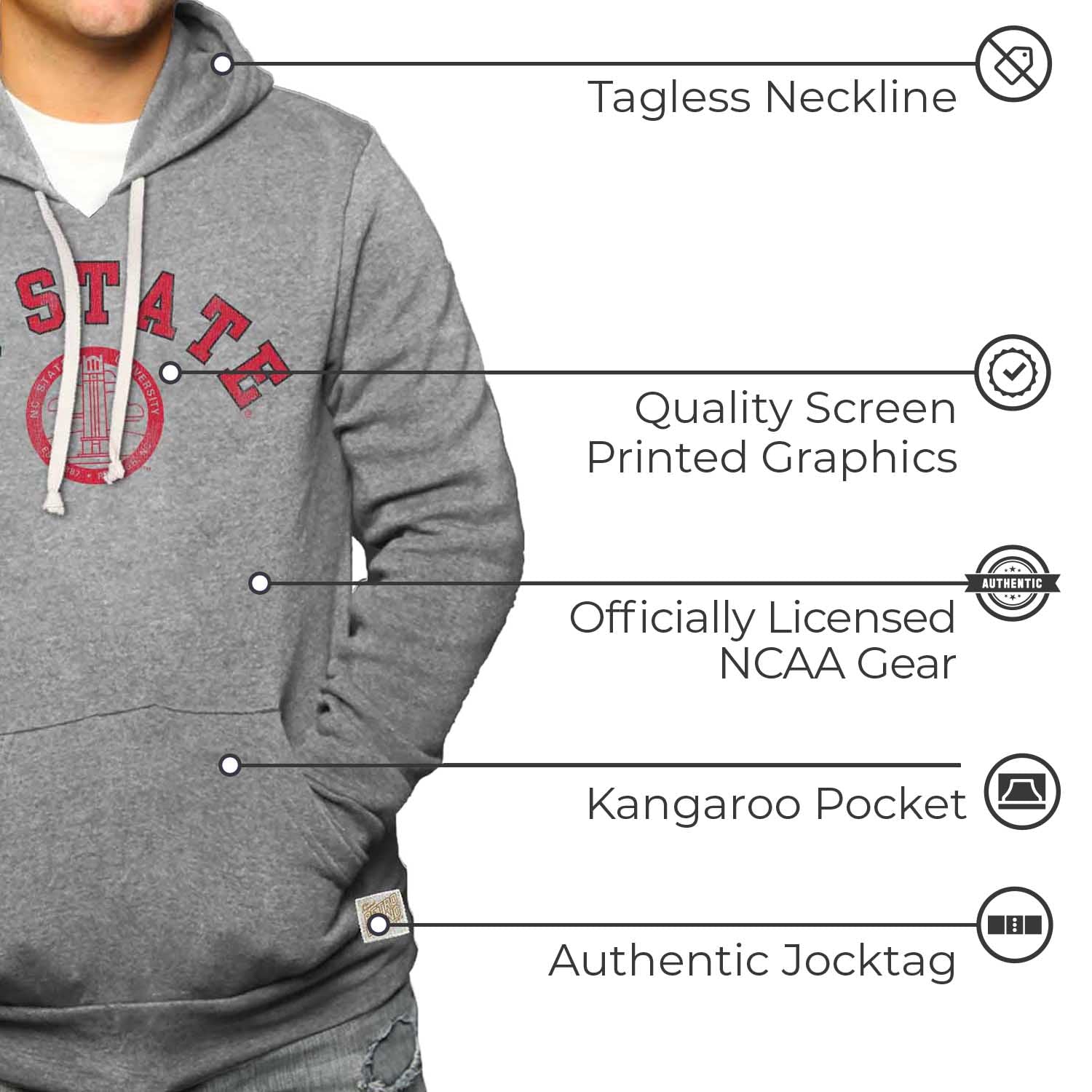 NC State Wolfpack College Gray University Seal Hooded Sweatshirt - Gray