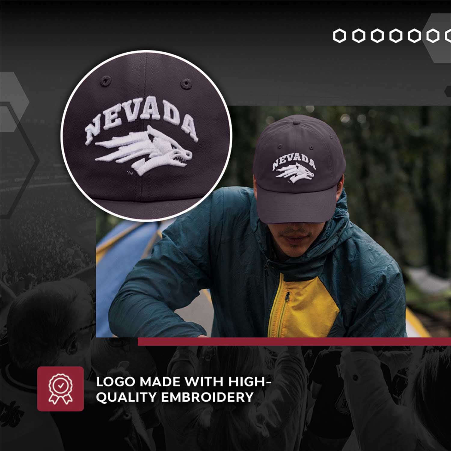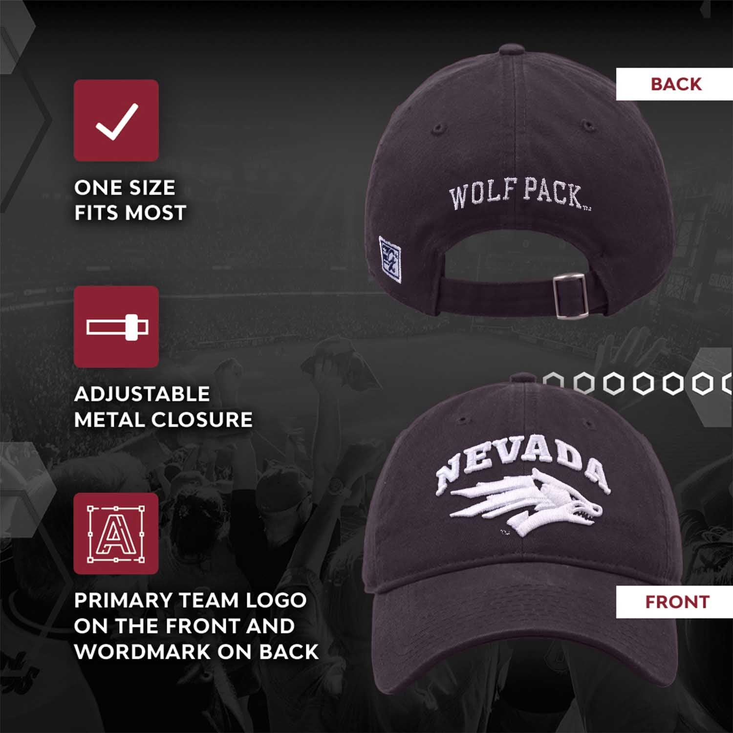 This Nevada hat is a must-have for any Wolf Pack fan! These college hats are made from 100% cotton and garment-washed twill, and are durable and comfortable to wear. The garment-washed fabric gives this vivid Nevada hat a cool, stylish, and fashionable look. The Nevada Wolf Pack logo is embroidered on the front, with the team wordmark on the back. The relaxed, unstructured hat design feels soft & easy to wear, making it a good dad baseball hat for everyday wear. The adjustable metal closure ensures a one size fits all. If you are looking for the perfect Nevada gift for Father's Day, look no further than the Nevada Wolf Pack dad hat! Wear it with the classic Nevada Wolf Pack apparel on game day with your Nevada Wolf Pack clothes and Nevada Wolf Pack merch, or wear it out running errands. This Nevada cap is a staple in every Wolf Pack fan's apparel. Show your support for Nevada this baseball hat.  Show your love for soccer, baseball, basketball, and hockey all year long.