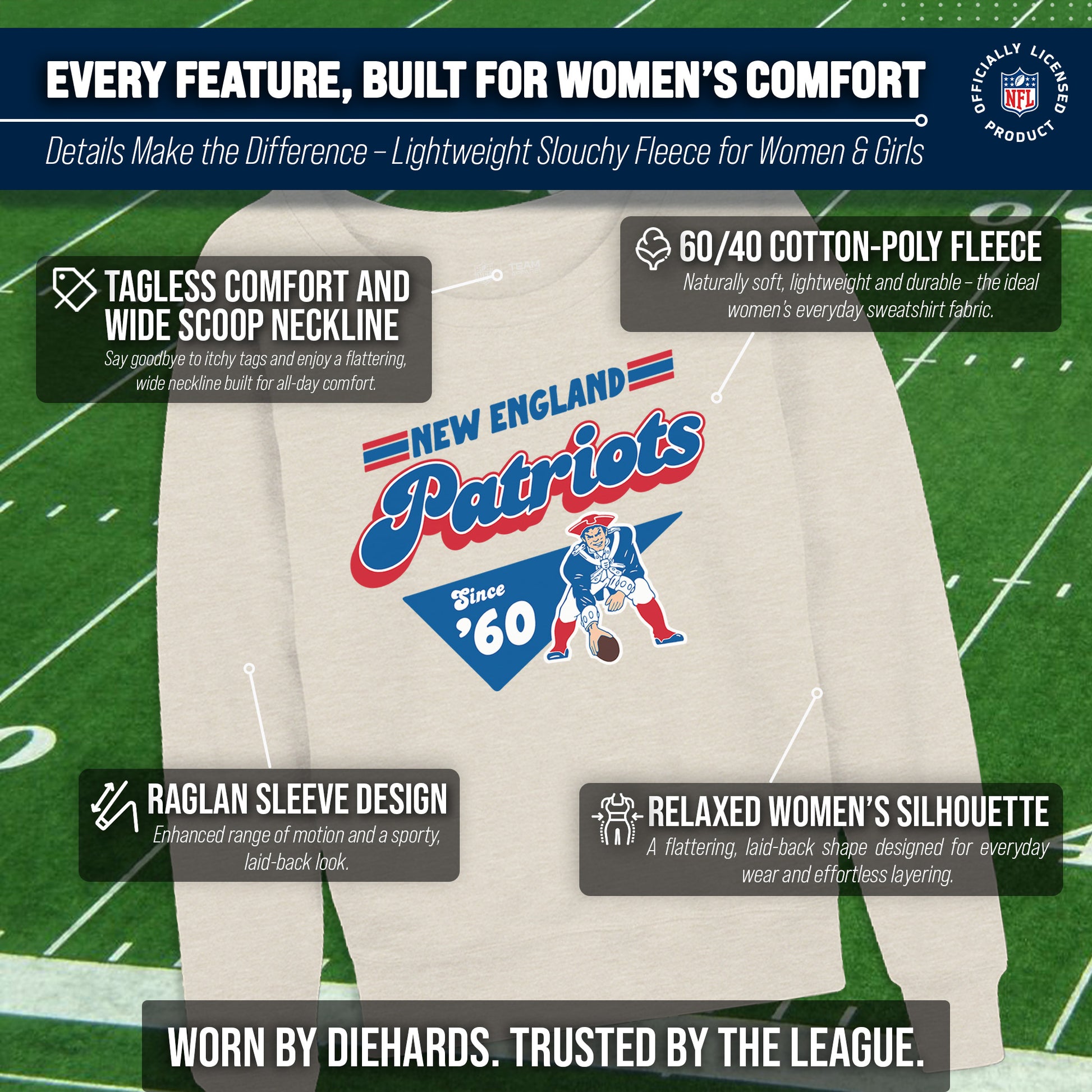 New England Patriots NFL Womens Vintage Charm Slouchy Crewneck - Birch