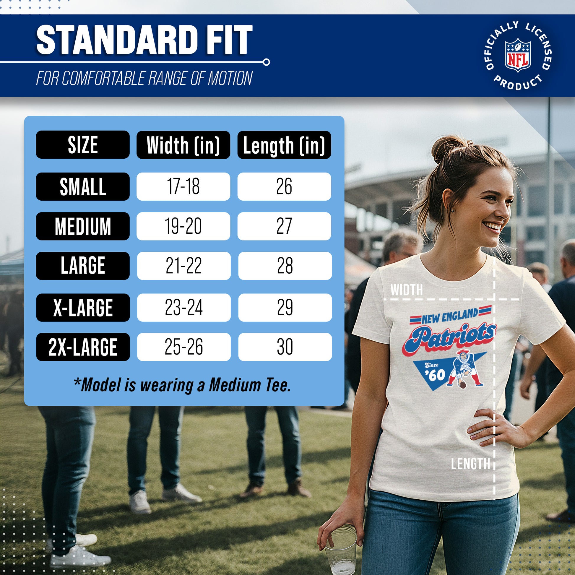 Calling all ladies! Get ready to rock game day with the Women's Team Fan Apparel Vintage Charm T-Shirt! This comfortable and stylish New England Patriots womens tee is perfect for any female football fan, whether you're cheering on your favorite team at the stadium or watching from home. Made from a super soft cotton fabric , this shirt will keep you cool and comfortable all game long. The pennant design, team name, and team logo adds a touch of retro flair, while the tag-less design ensures itch-free wear. Whether you're a die-hard fan or just love a good simple look, this shirt is perfect for showing off your team spirit. Available in a wide range of women's sizes, it's suitable for all shapes and sizes! The birch-colored garment will match well with everything in your closet! So grab your girlfriends and get ready to cheer on your team in style with the Women's Team Fan Apparel Vintage Charm T-Shirt!