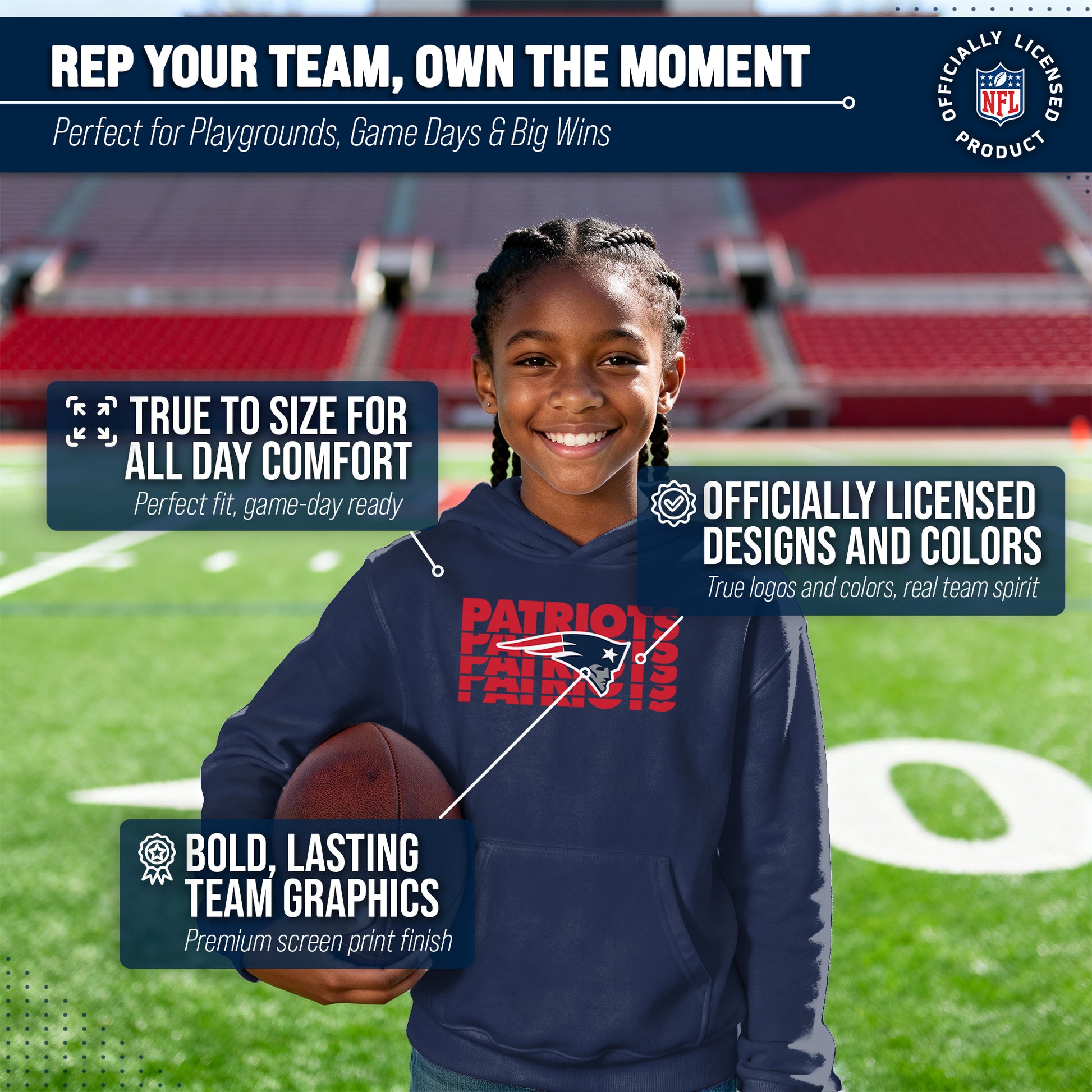 New England Patriots NFL Youth Repeating Logo Football Fleece Hooded Sweatshirt - Navy