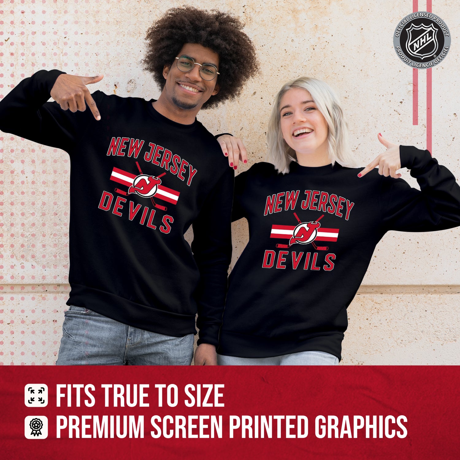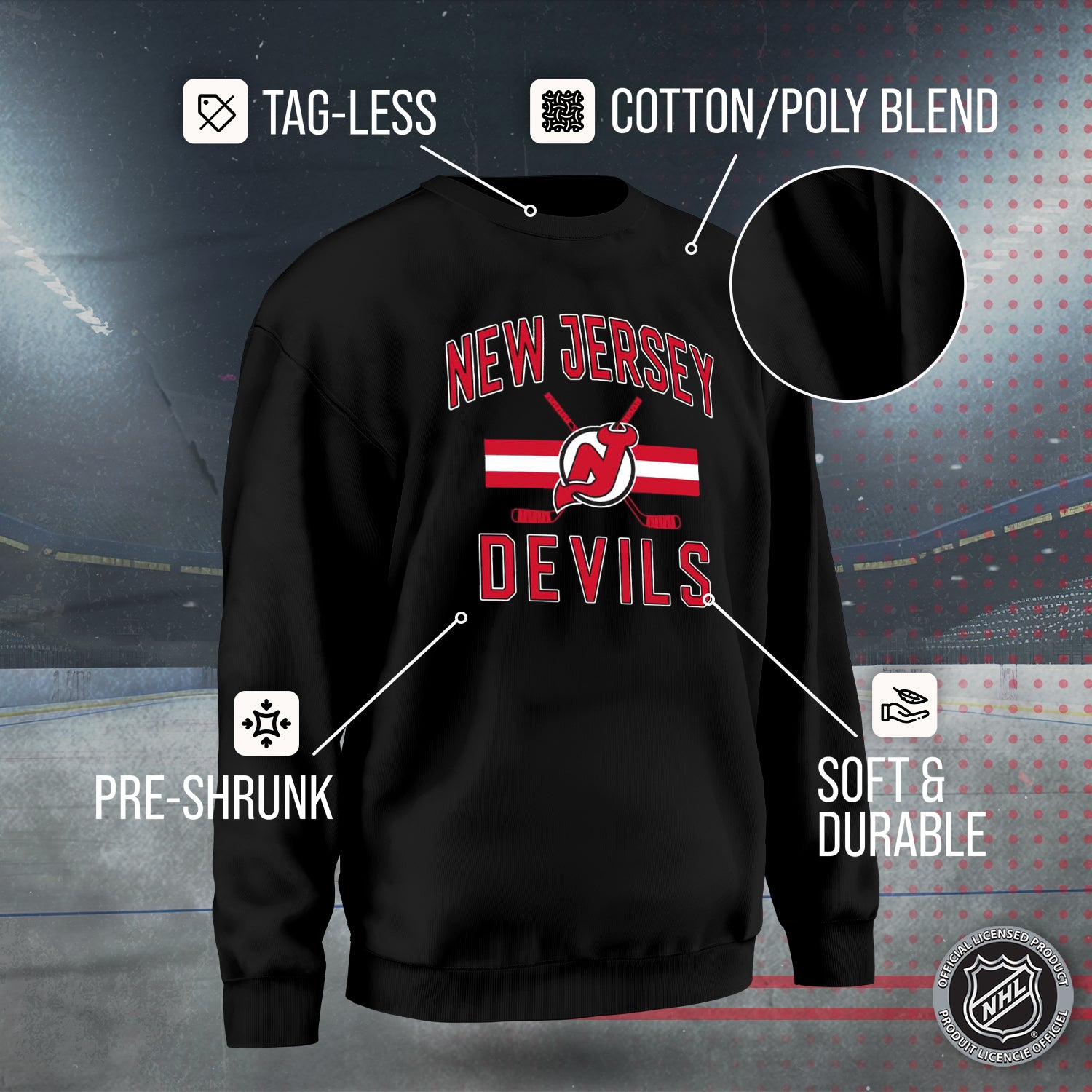 New Jersey Devils Adult NHL Face Off Hockey Fleece Crewneck Sweatshirt - Black