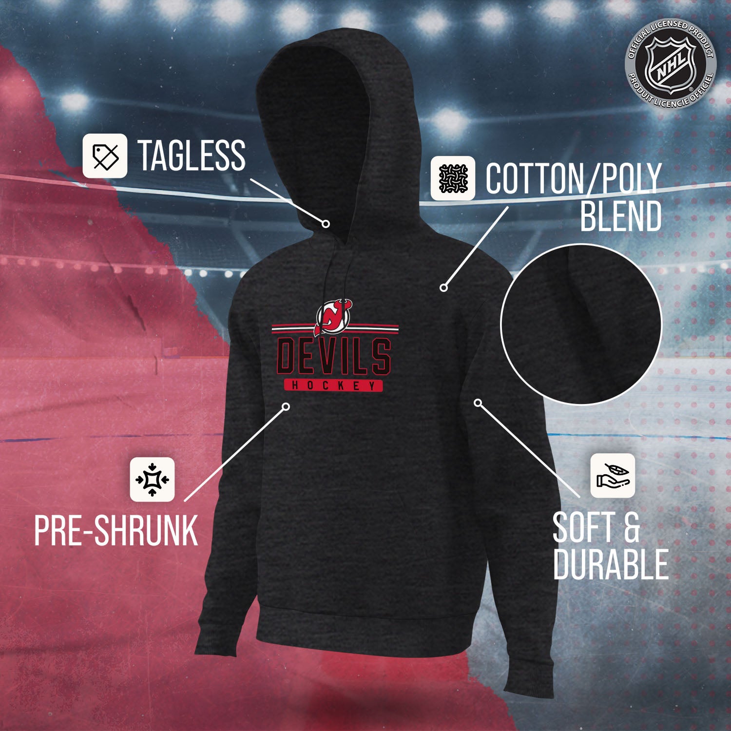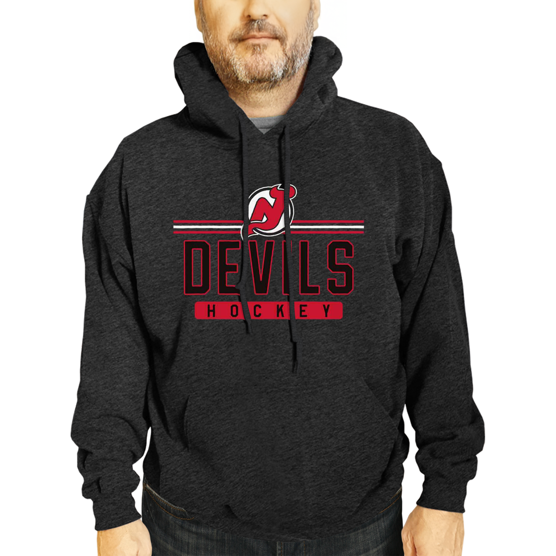 New Jersey Devils NHL Adult Heather Charcoal True Fan Hooded Sweatshirt Unisex - Charcoal