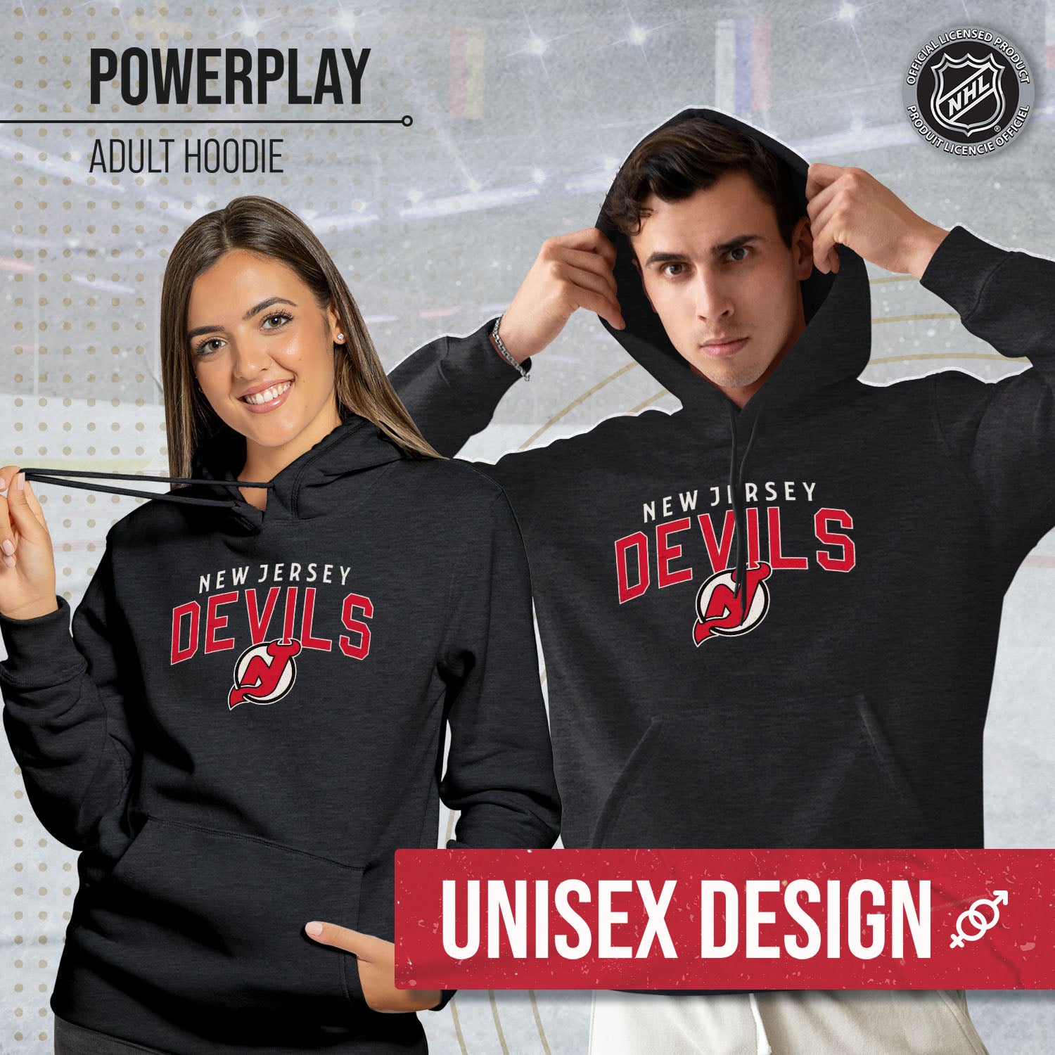 New Jersey Devils NHL Adult Unisex Powerplay Hooded Sweatshirt - Black Heather