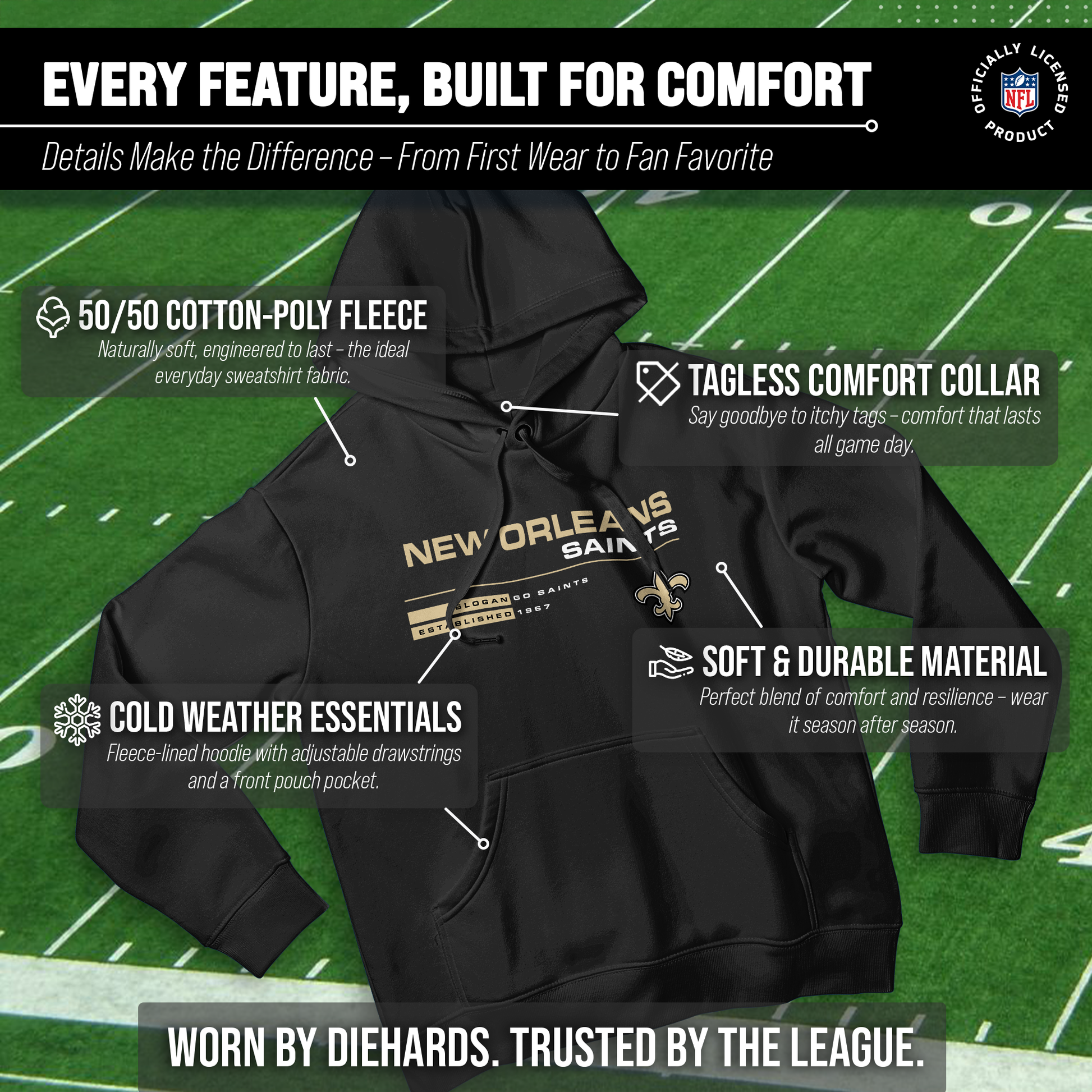 New Orleans Saints Adult NFL Speed Stat Sheet Fleece Hooded Sweatshirt - Black