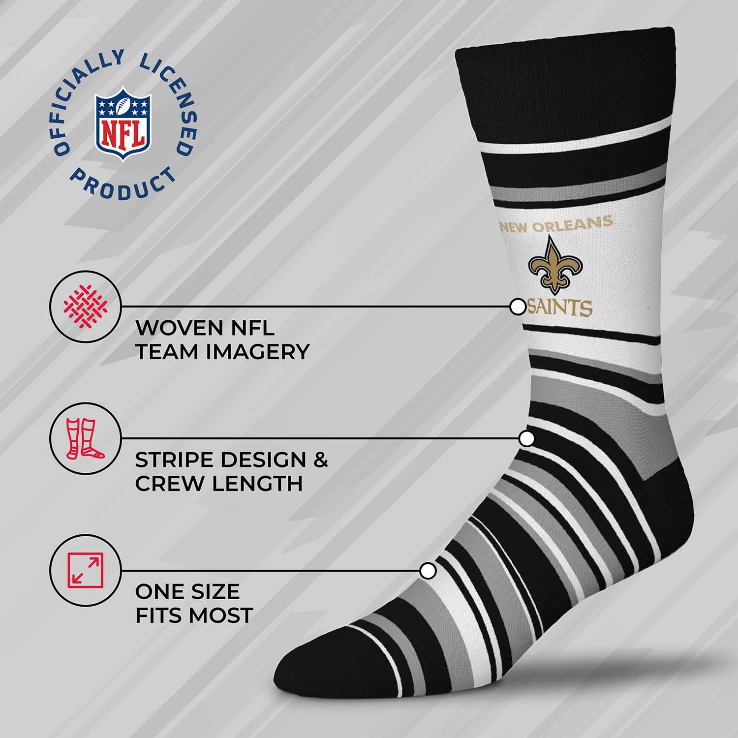 New Orleans Saints NFL Adult Striped Dress Socks - Black