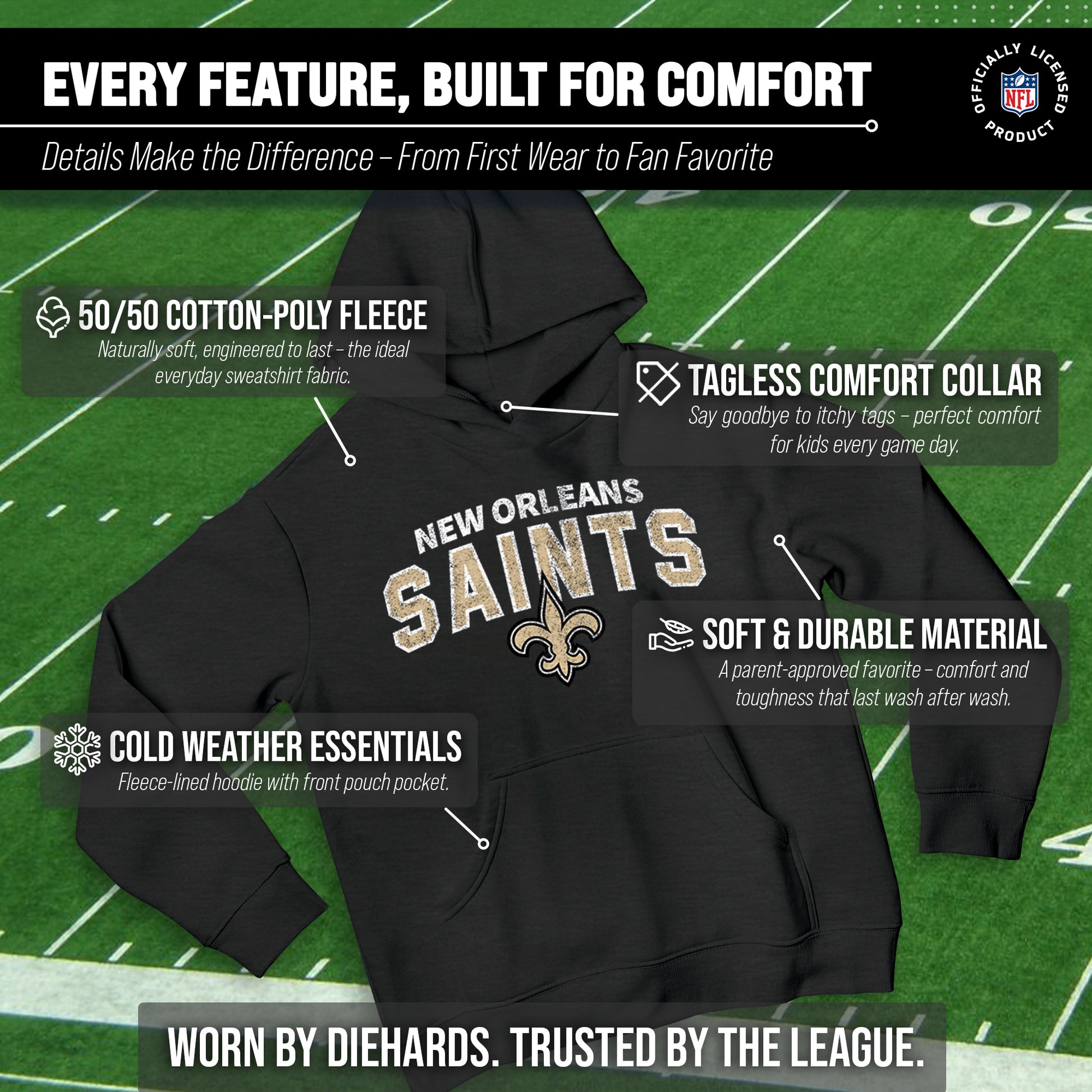 New Orleans Saints NFL Youth Starting Fresh Hoodie- Pro Football Sweatshirt for Boys and Girls - Black