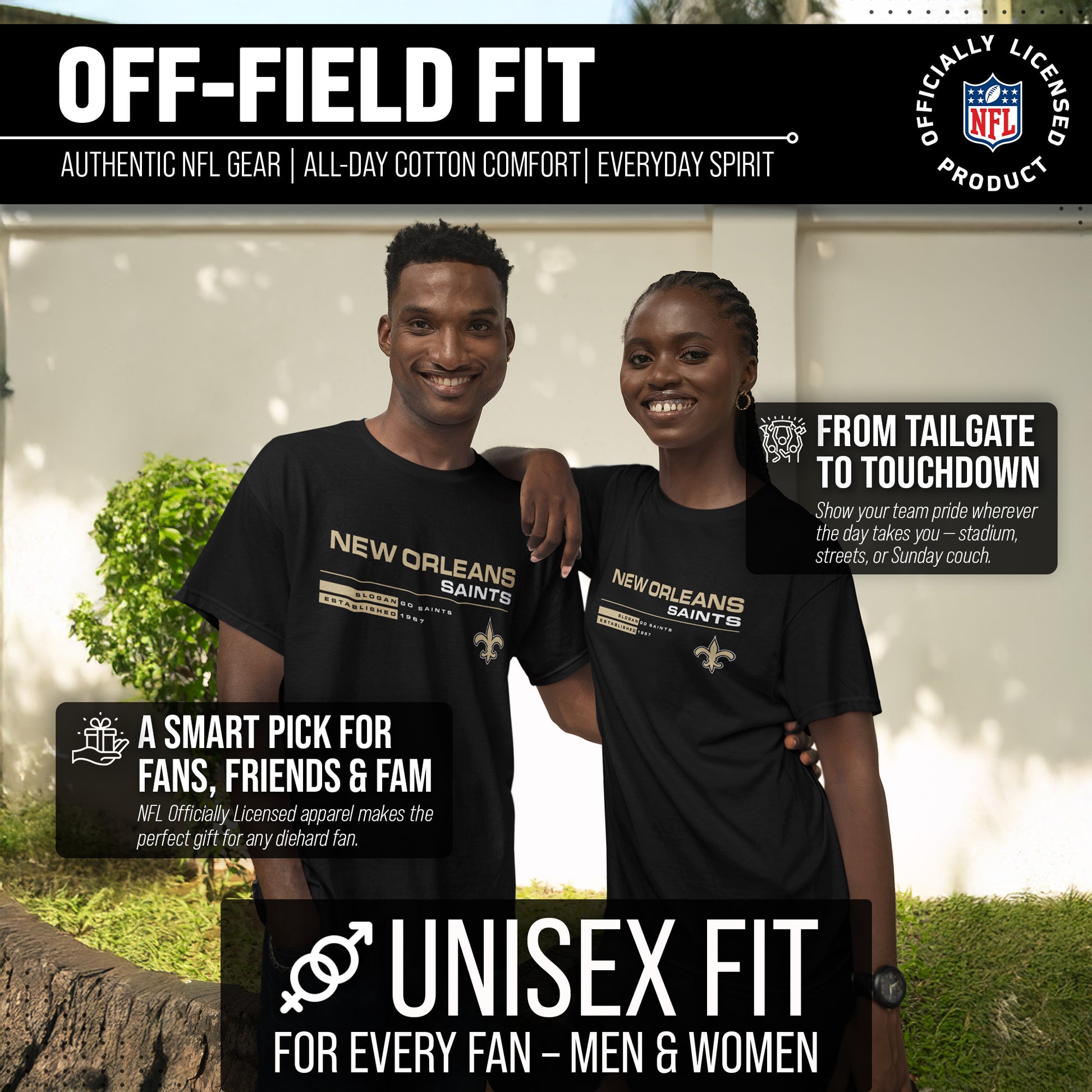 Score with Team Fan Apparel, the ultimate destination for officially licensed NFL apparel for men and women. We use only the highest-quality screen printing techniques to bring you the most comfortable, durable, and stylish clothing possible. Go ahead and show your team pride at the big game or any time! This premium t-shirt fits both male and female adults and comes in small, medium, large, XL, and XXL. So needless to say, it fits New Orleans Saints fans of all types! Maybe you aren't a Saints fan but you know someone who is? Don't worry! This high-quality t-shirt is soft, lightweight, breathable, and a GREAT gift for any birthday, anniversary, Father's Day, Mother's day, you name it! So, if you want to stand out as the #1 fan at the next big game or watch party, you're going to want to be wearing one of these football t-shirts.