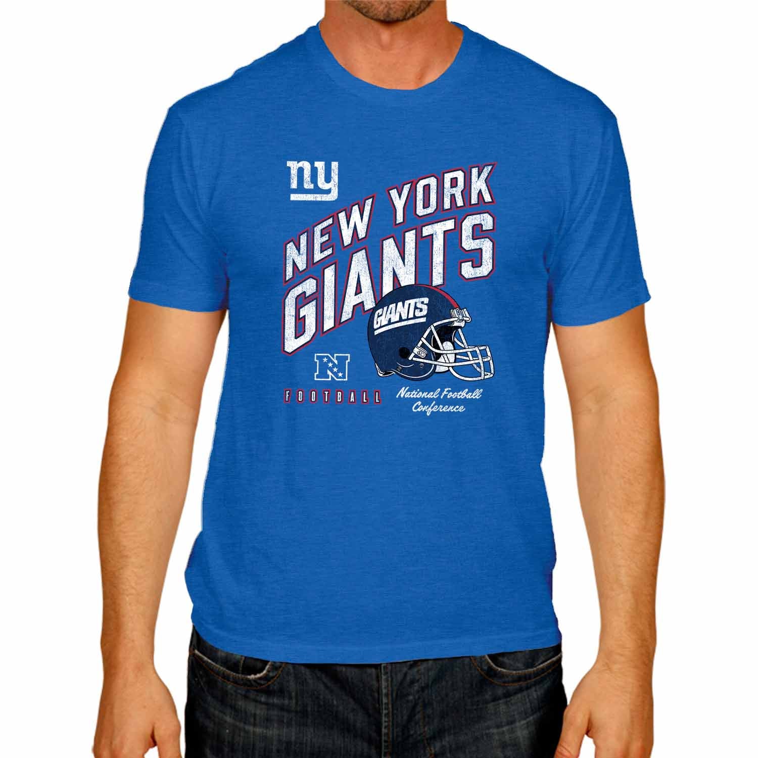 New York Giants NFL Adult Distressed Helmet Tag-Less T-Shirt - Royal Heather