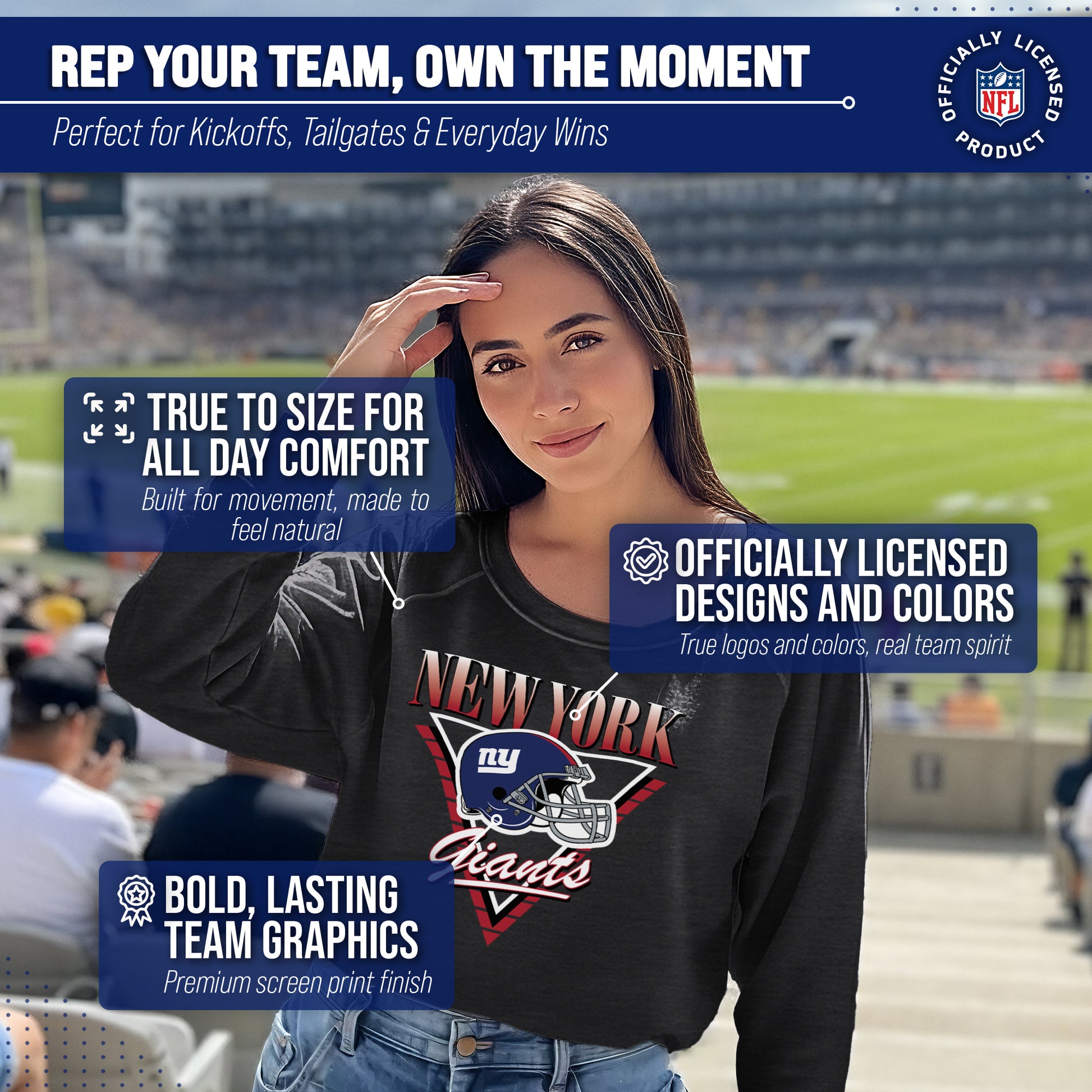 New York Giants NFL Womens Retro Triangle Slouchy Crewneck - Heather Charcoal