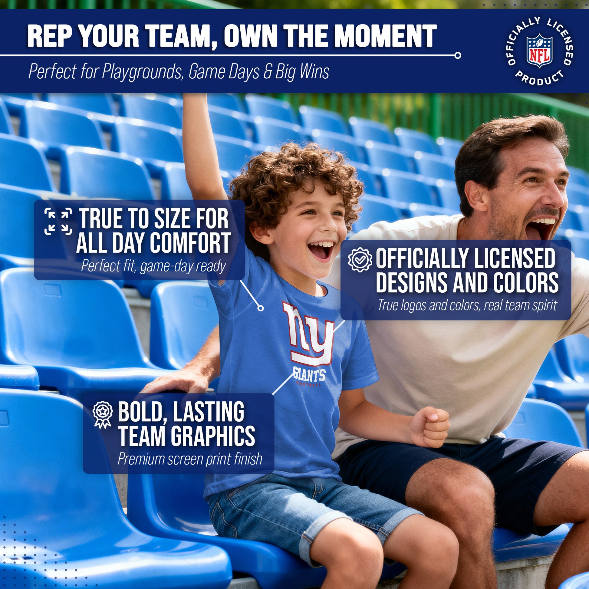 New York Giants Youth NFL Ultimate Fan Logo Short Sleeve T-Shirt - Royal
