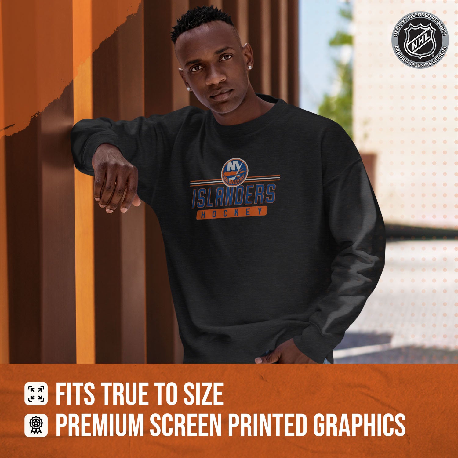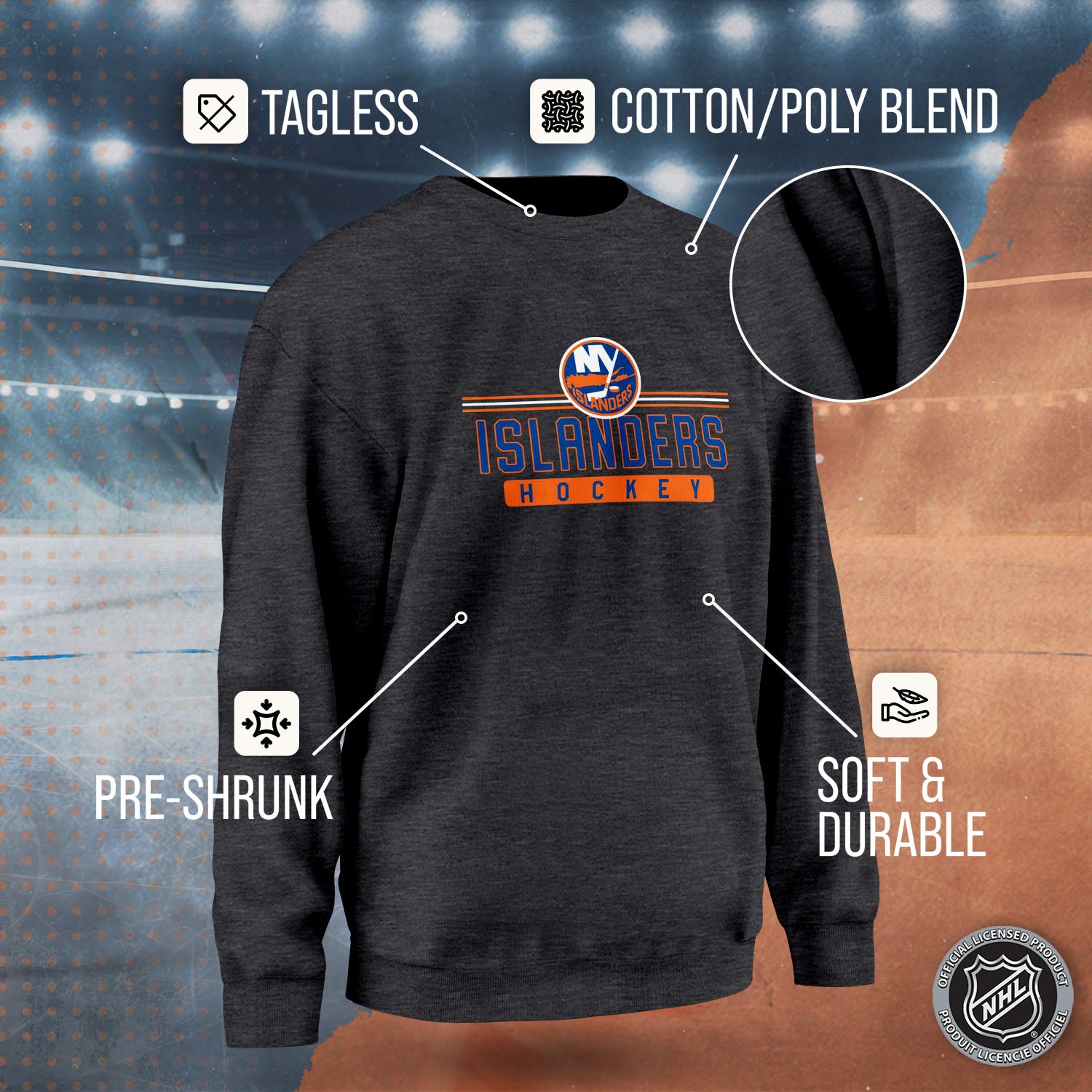 Score with Team Fan Apparel, the ultimate destination for officially licensed NHL apparel for men and women. Designed and printed in the USA, we use only the highest quality screen printing techniques to bring you the most comfortable, durable, and stylish clothing possible. Go ahead and show your team pride at the big game or any time! This premium crewneck fits both male and female adults and comes in small, medium, large, XL, and XXL. So needless to say, it fits New York Islanders fans of all types! Maybe you aren't a Islanders fan but you know someone who is? Don't worry! This high-quality crewneck is soft, lightweight, breathable, and a GREAT gift for any birthday, anniversary, Father's Day, Mother's day, you name it! So, if you want to stand out as the #1 fan at the next big game or watch party, you're going to want to be wearing one of these hockey t-shirts.