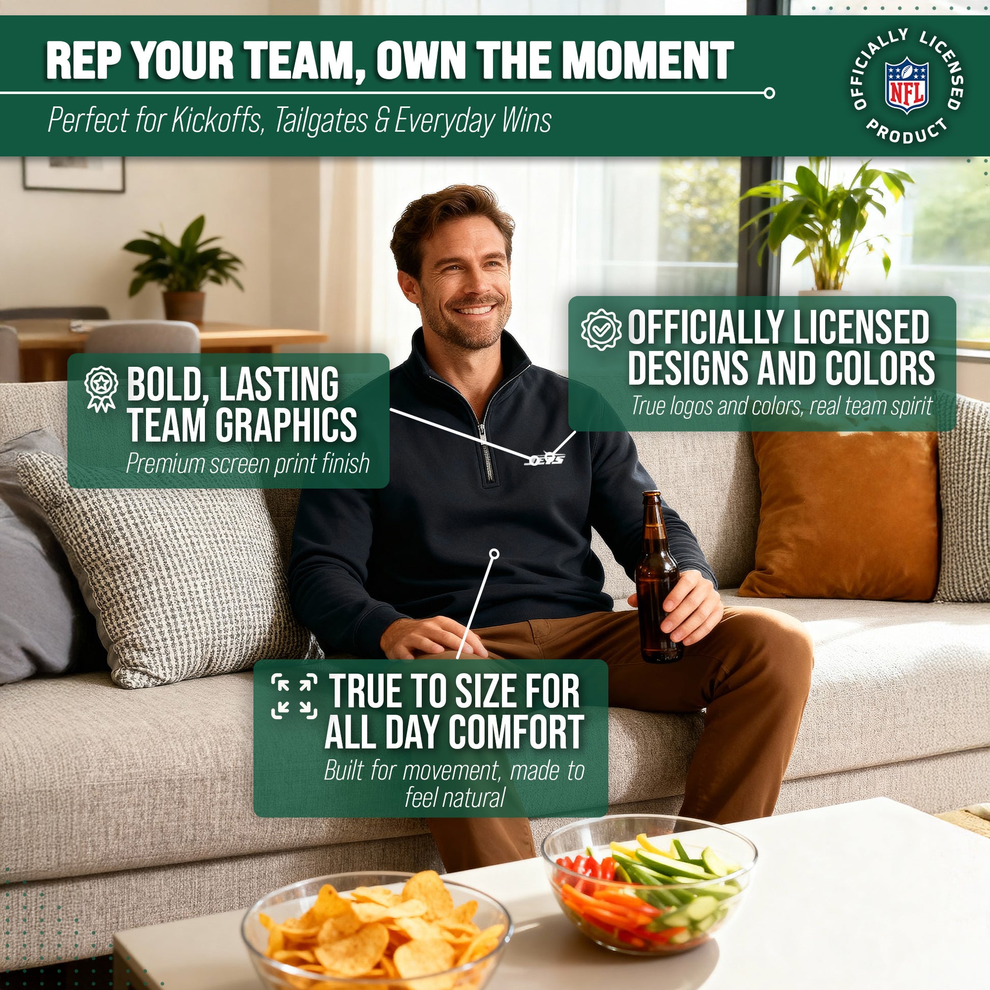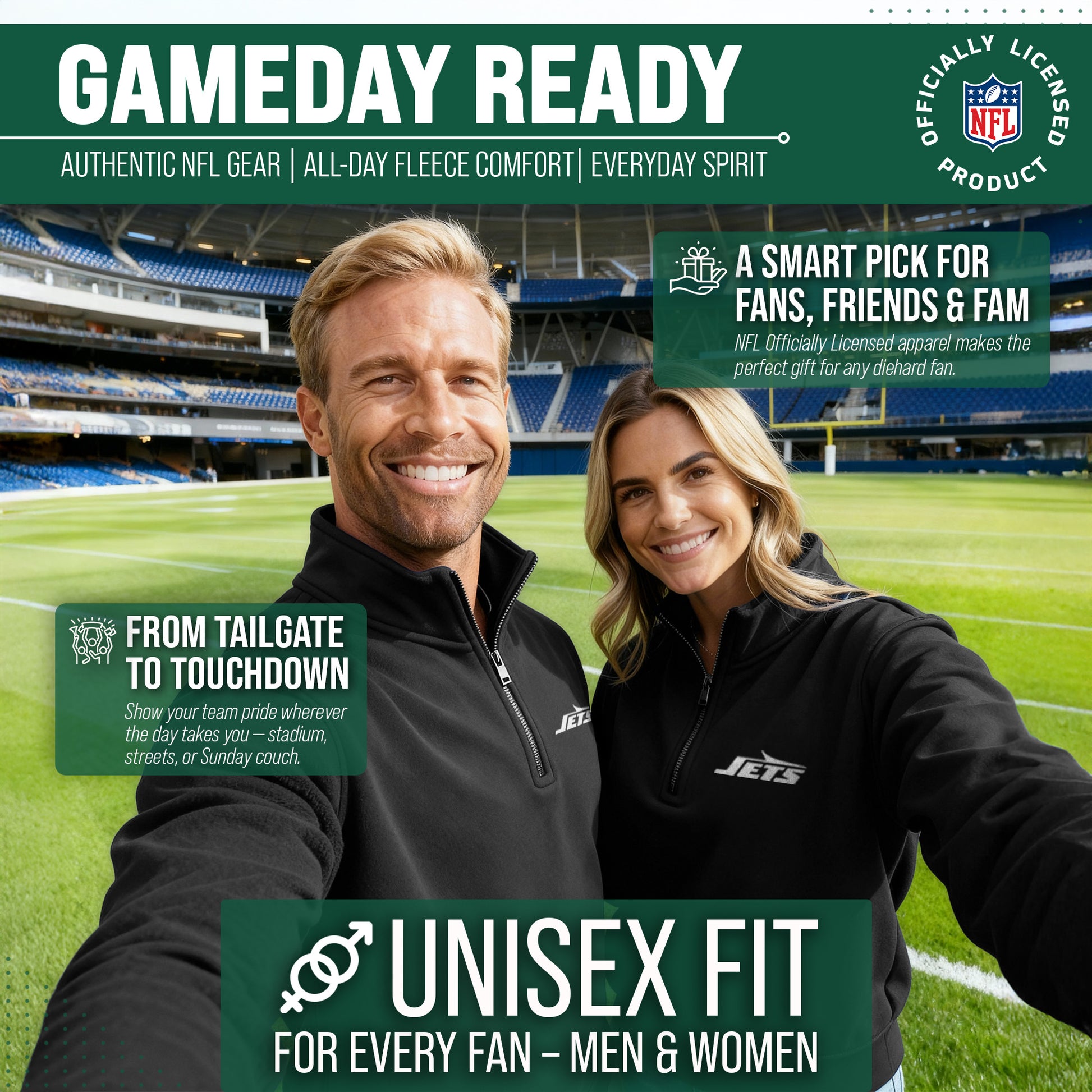 Show off your New York Jets pride with the officially licensed NFL Team Logo 1/4 Zip Fleece Pullover Sweatshirt! Designed with fans in mind, this cozy and stylish pullover is the perfect way to represent your favorite team all season long. Crafted with ultra-soft fleece fabric, it delivers warmth and comfort whether you’re braving chilly stadium seats, tailgating with friends, or simply cheering on the Jets from home. The classic quarter-zip design adds versatile style and makes layering easy, so you can throw it on over a tee or under a jacket as the temperature drops. With the authentic New York Jets logo proudly displayed on the front left chest, your loyalty will be clear to everyone around you. No matter where game day takes you, this pullover is a statement piece that showcases true Jets spirit. Made for both men and women, this sweatshirt features a flattering unisex fit that looks great on all body types. It’s available in a full range of sizes to ensure every Jets fan finds the right fit. Whether you’re hunting for your next go-to tailgate outfit, upgrading your cold-weather game-day look, or shopping for the perfect gift for a fellow football fan, this 1/4 zip fleece is an unbeatable choice. Durable, versatile, and stylish, the New York Jets 1/4 Zip Fleece Pullover Sweatshirt is a must-have addition to any fan’s wardrobe. From Sunday kickoffs to casual everyday wear, you’ll stay warm, comfortable, and proud to rep the Jets every time you put it on. Don’t miss your chance to gear up—this essential fan favorite is ready to help you cheer on your team in style!