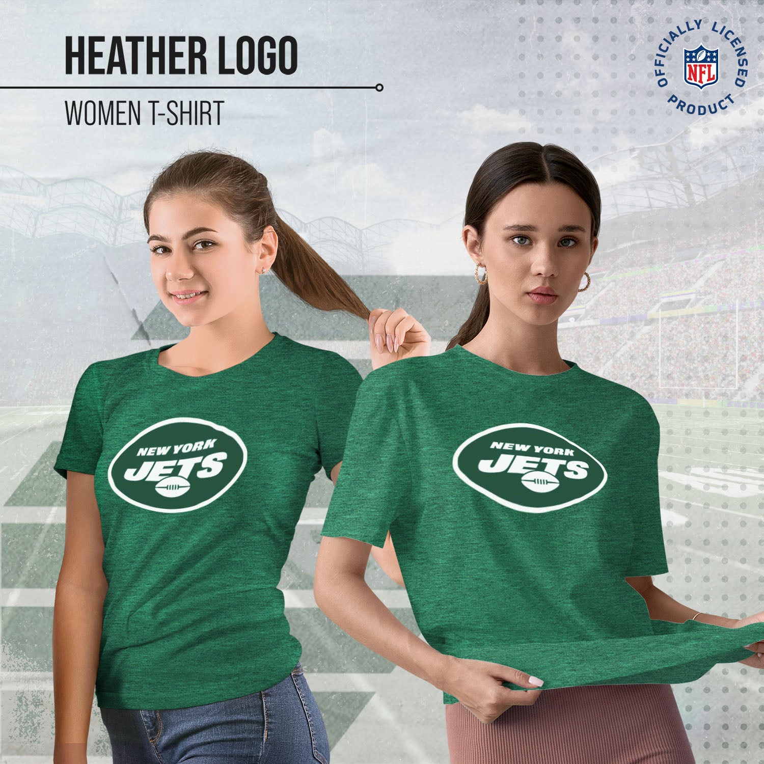 Our officially licensed womens Jets shirt is super comfortable, runs true to size, and is great for showing off your New York Jets pride. The high-quality printed logo will look fresh wash after wash, making it a great alternative to your womens New York Jets jersey. Our logo t-shirt has a relaxed yet contoured fit for a casual yet feminine look. The short sleeve shirt is perfect for tailgates in warmer months, or with jeans or leggings and a sweater during colder months. If you're looking to give team t shirts for women as a gift, our womens heather logo tshirt is the Jets shirt women will love. Officially licensed to ensure no counterfeit designs or colors, our New York Jets womens shirts are great for superfans. The womens gameday football t shirt will definitely become one of your favorite tops.