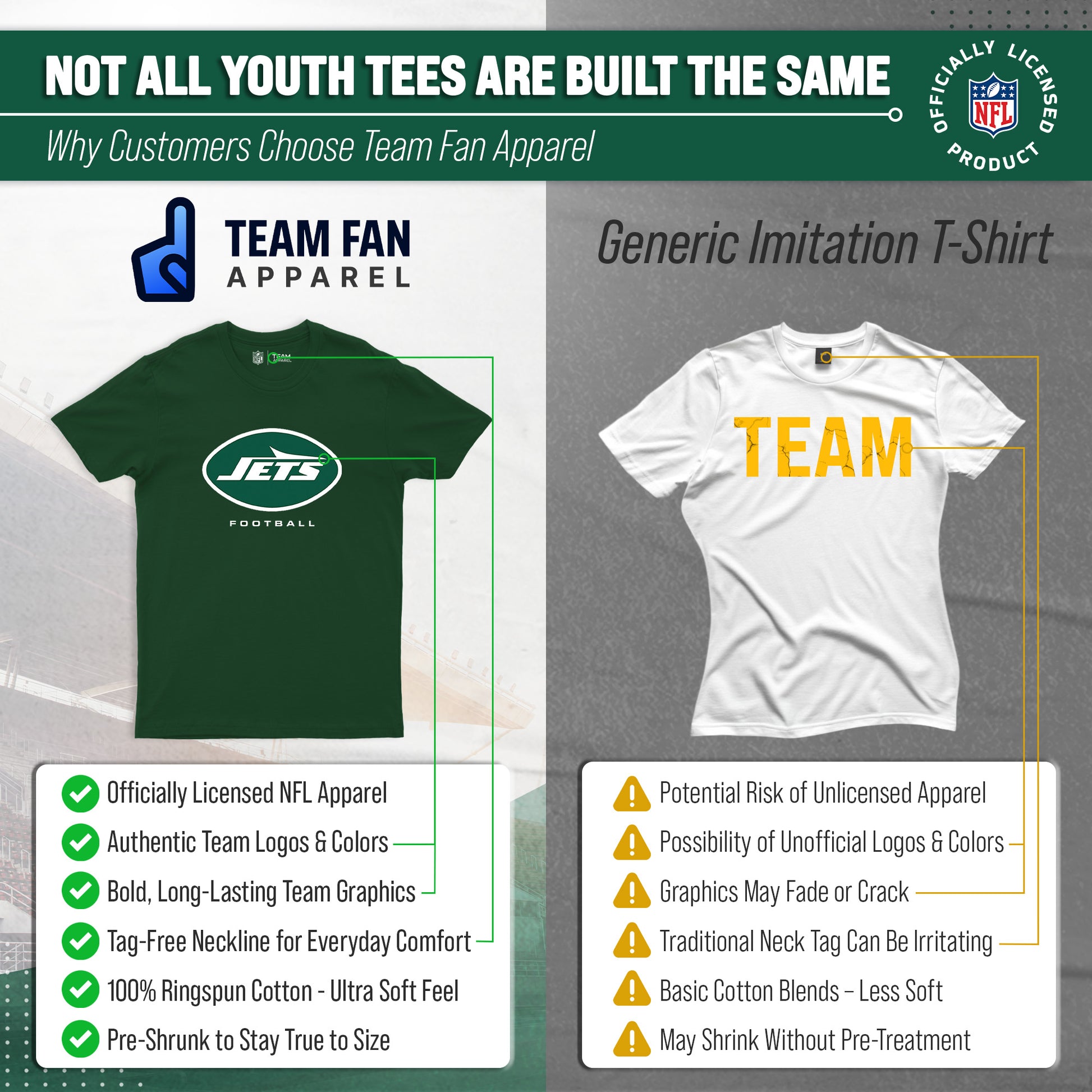 Score with Team Fan Apparel, the ultimate destination for officially licensed NFL apparel for all whether with youth or adult we got you covered . We use only the highest-quality screen printing techniques to bring you the most comfortable, durable, and stylish clothing possible. Go ahead and show your team pride at the big game or any time! This premium youth t-shirt comes in small, medium, large, XL. So needless to say, it fits young [team_long] fans of all types! Maybe you aren't a [team_nickname] fan but you know someone who is? Don't worry! This high-quality t-shirt is soft, lightweight, breathable, and a GREAT gift for any birthday or Christmas gift! So, if you want your young fan to feel bold and proud at the next big game or tailgate, you're going to want to be getting your hands on our [team_long] Youth Big Logo t-shirt today!