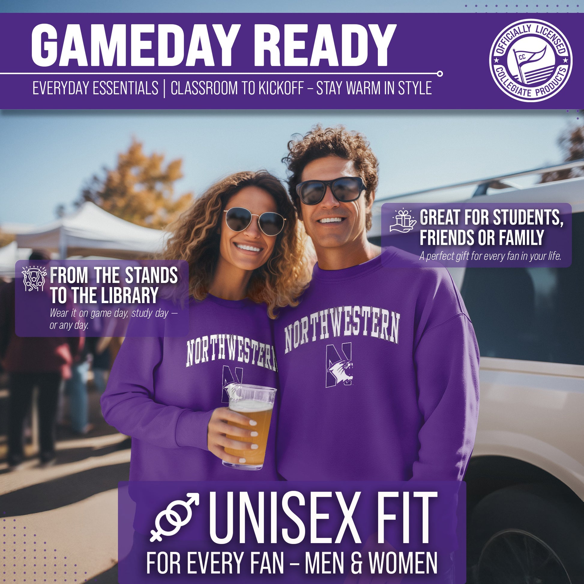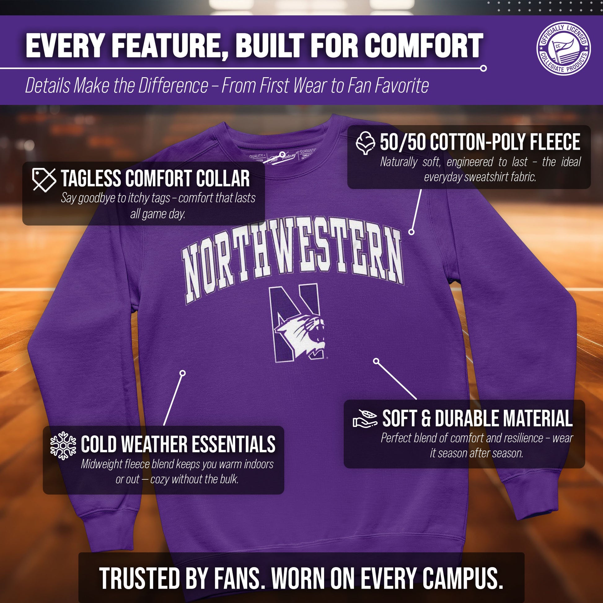 You know what's better than a perfect game? Scoring the best merch! Go ahead and show your team pride at the big game or any time! This premium-quality Gameday crew pullover is super comfy, fits both male and female adults, and comes in small, medium, large, XL, and XXL. So needless to say, it fits Northwestern Wildcats fans of all types! Maybe you aren't a Northwestern fan but you know someone who is? Don't worry! This high-quality design machine washable unisex fit crew is perfect for anyone who loves their team. We use only the highest quality screen printing techniques to bring you the most comfortable, durable, and stylish team apparel possible. It doesn't matter if your headed to the next big game or just hanging out at home, the love of your favorite team never stops. So, make sure the everyone know who's the number one team you support. Our crew sweatshirts make the perfect gift for Father's Day, birthdays, Christmas, and more.