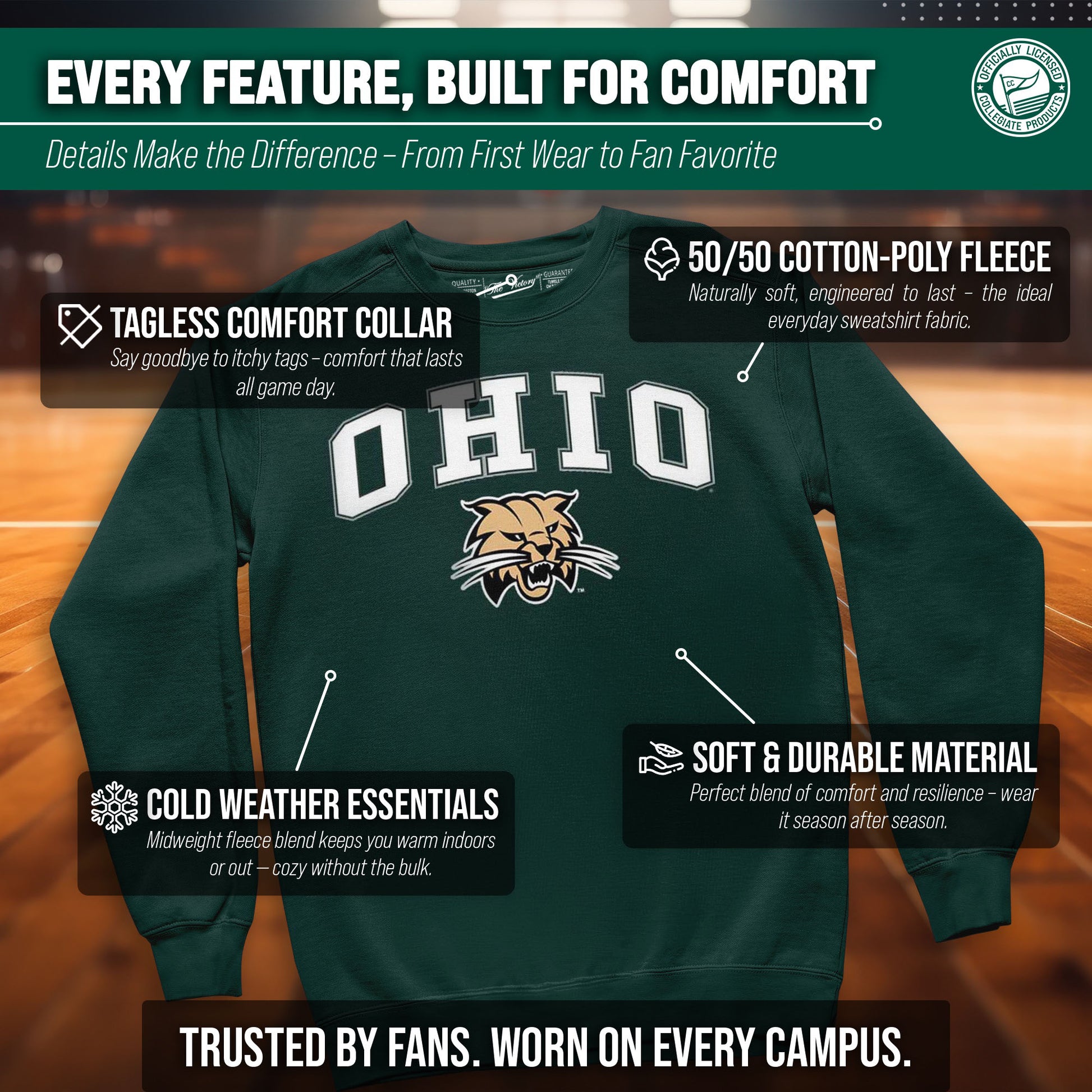 Ohio Bobcats Adult Arch & Logo Soft Style Gameday Crewneck Sweatshirt - Green