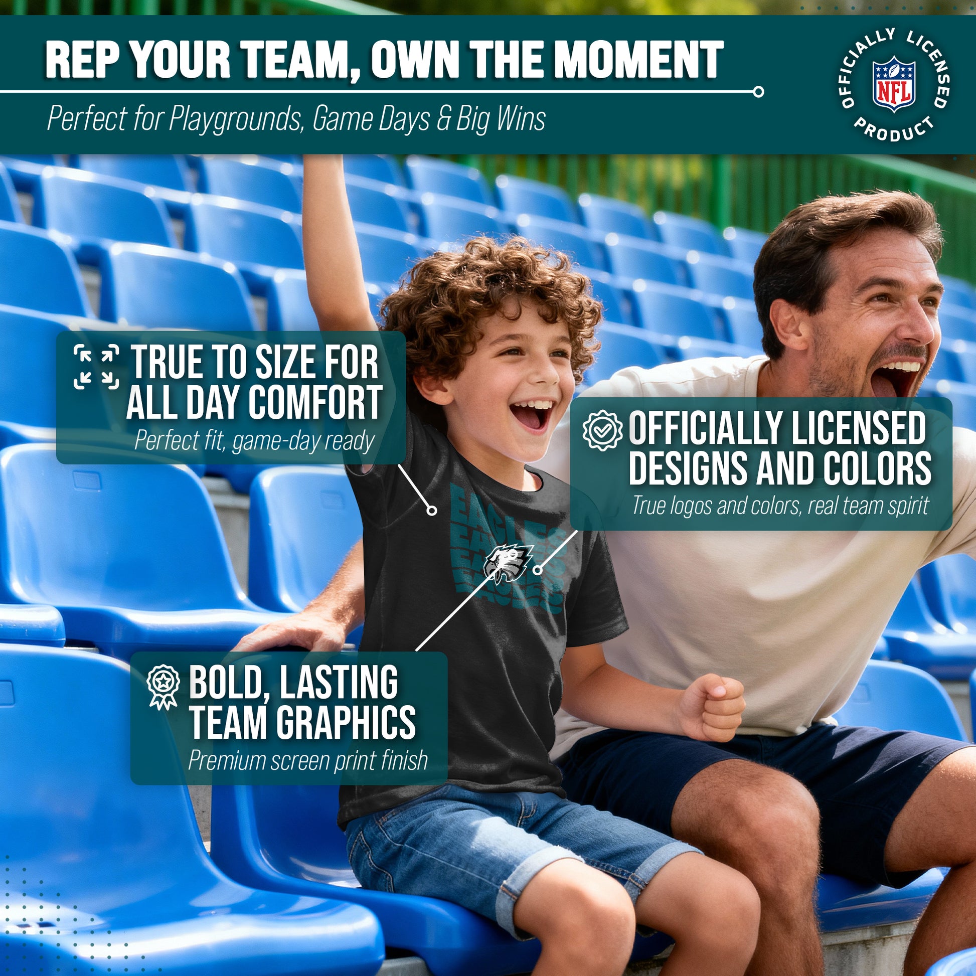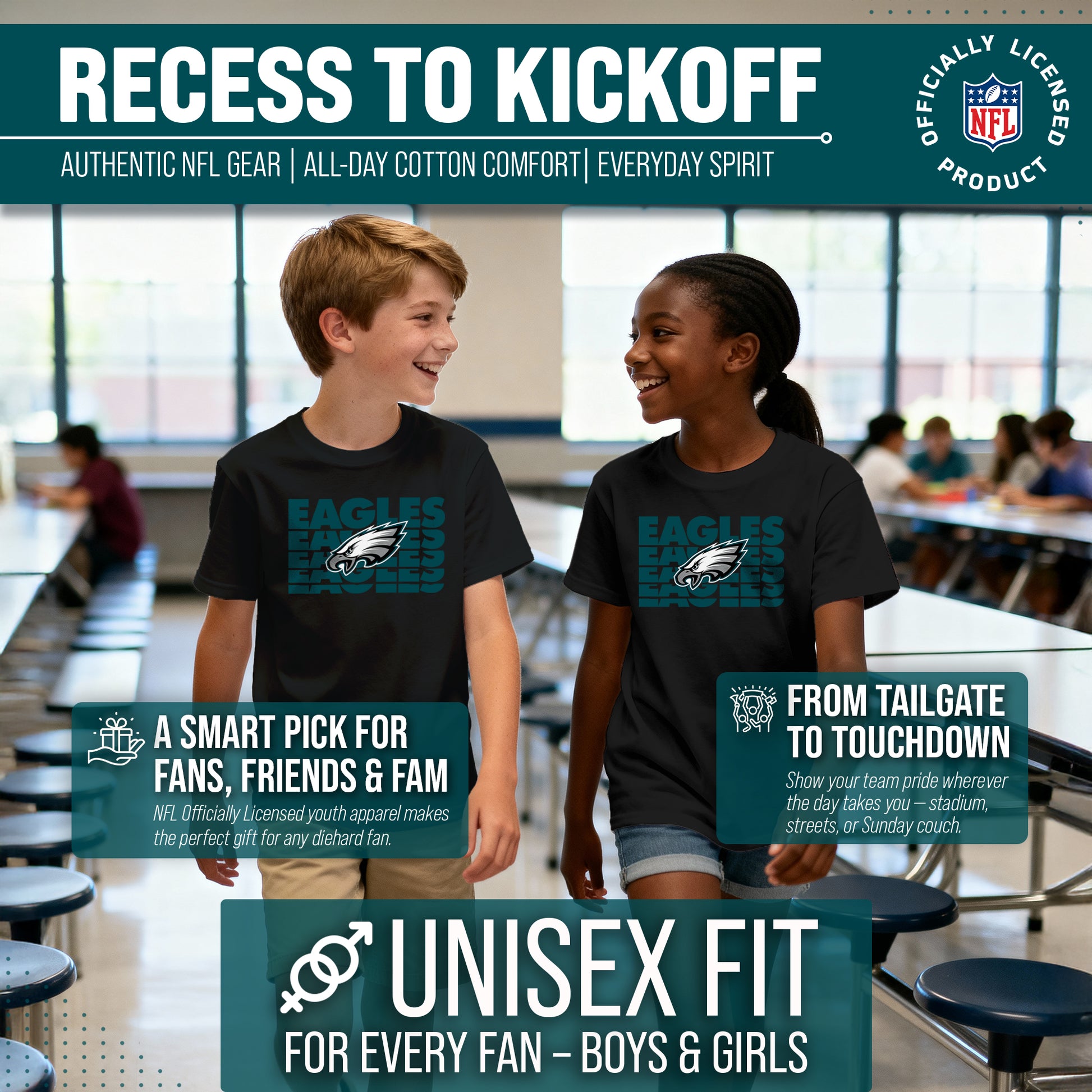 Philadelphia Eagles NFL Youth Repeating Logo Football T-Shirt Unisex Tag Free Comfortable - Black