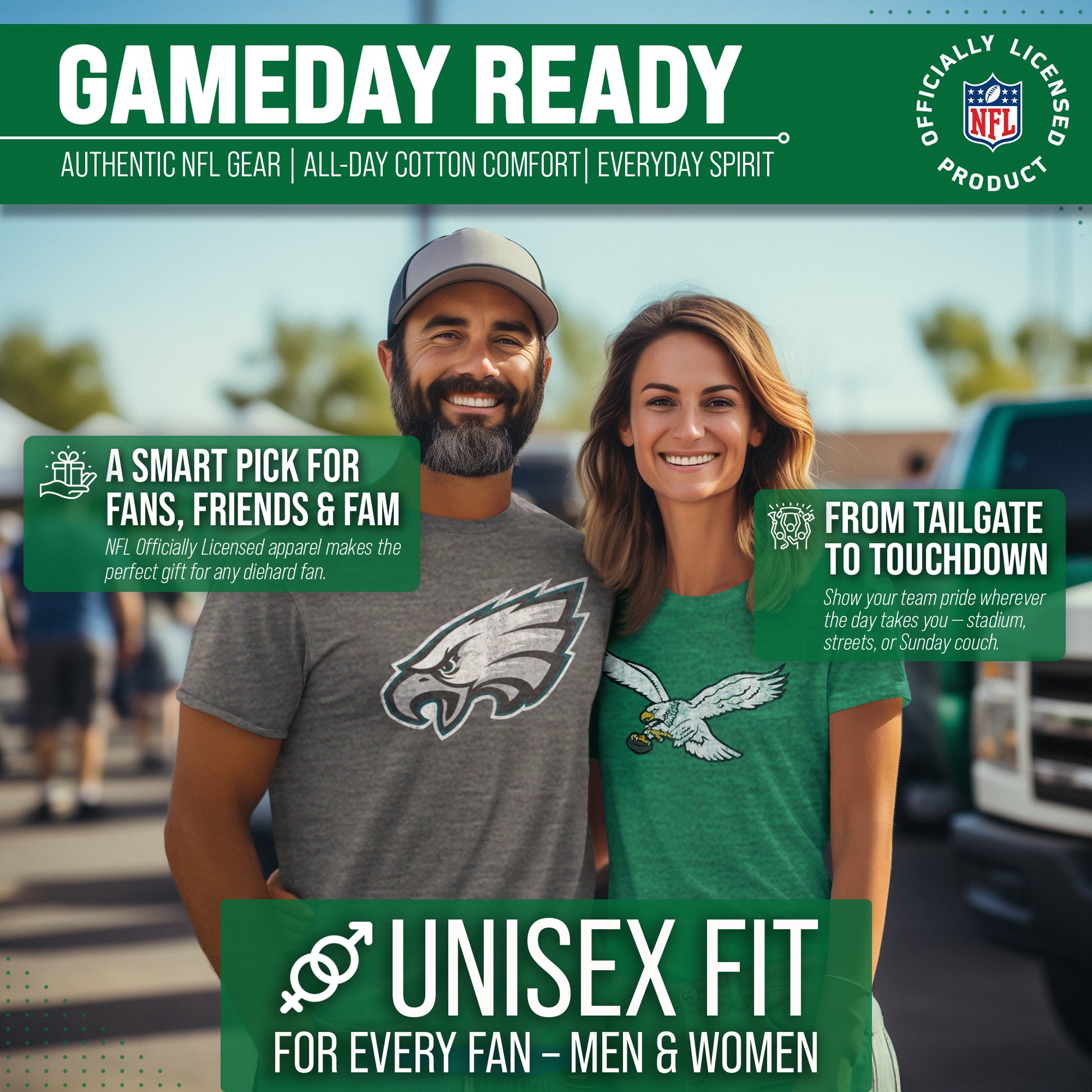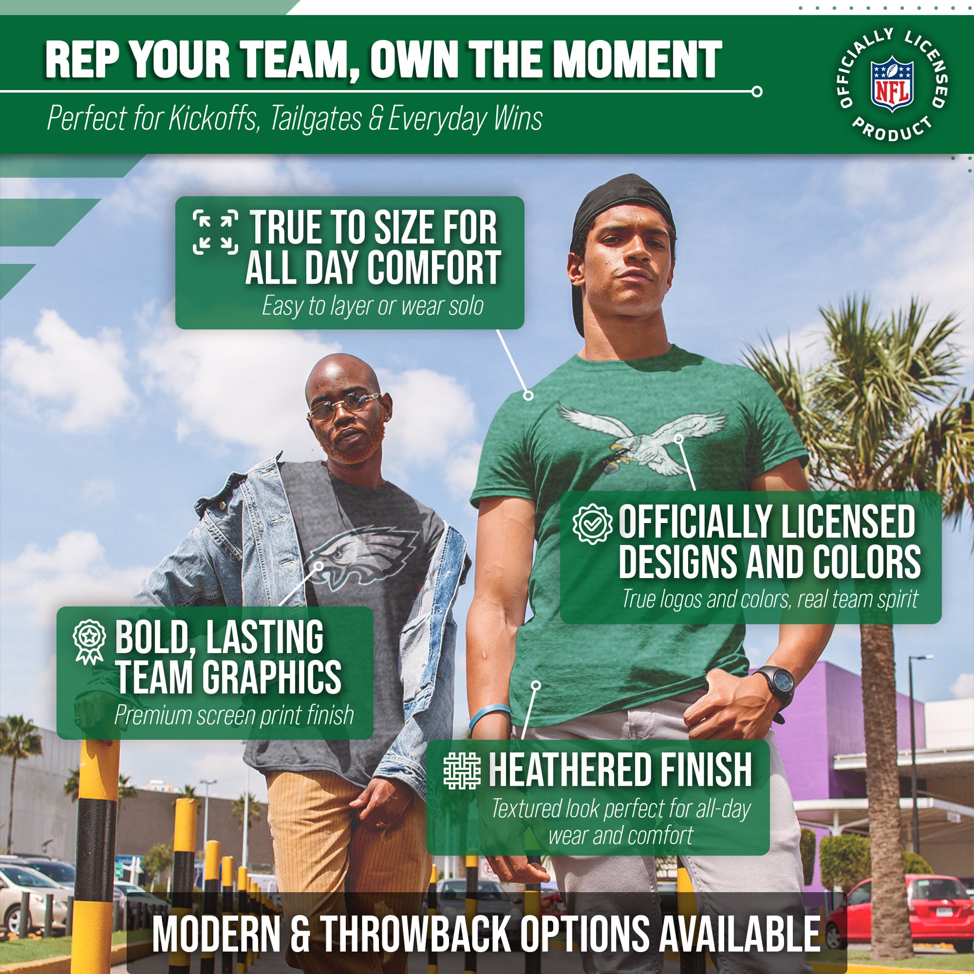 Looking for a comfortable, lightweight tee with a Philadelphia Eagles design? Look no further than the Modern Throwback Tee. This Eagles t-shirt is made of cotton and polyester. It features the officially licensed Eagles logo in a trendy design. It's designed and printed in the USA and is perfect for men or women. This tagless Eagles shirt is beyond comfortable and will keep you looking and feeling your best while you cheer on your favorite football team on game day. If you are looking for the best Philadelphia Eagles gifts for men, Philadelphia Eagles for women, pro football Philadelphia Eagles shirts, football tshirts, men's and womens Eagles t-shirts, football merchandise Philadelphia Eagles gear for men and women, lightweight & tagless Philadelphia Eagles shirts, or Philadelphia Eagles apparel, look no further than this Philadelphia Eagles short sleeve fan shirt. It makes the perfect Father's Day or Christmas gift for Philadelphia Eagles fans.