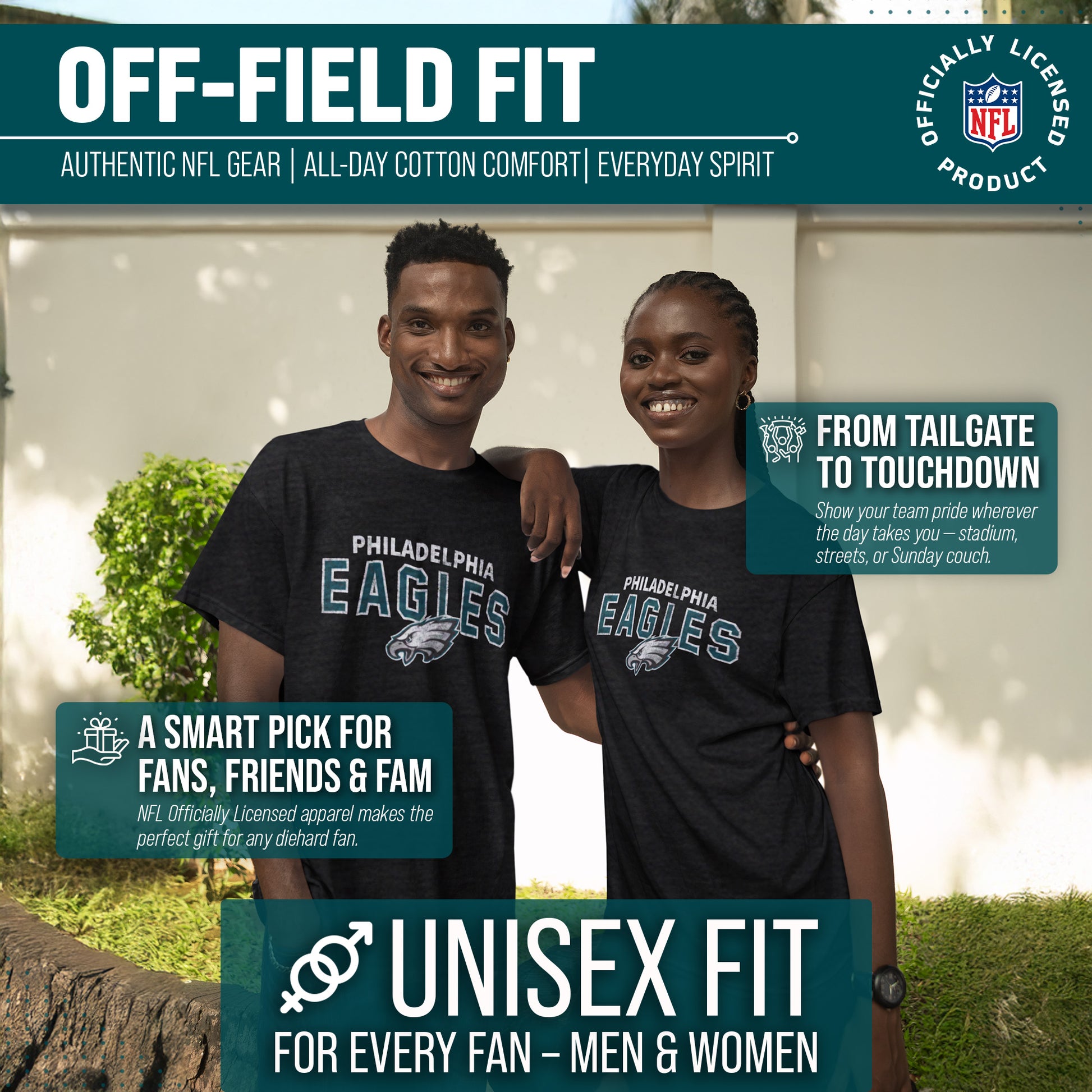 The Starting Fresh Tee is the perfect shirt for any fan of the Philadelphia Eagles. The Philadelphia Eagles cotton shirt is made from a polyester/cotton blend and has a soft feel. The material is lightweight, durable, and beyond comfortable. This Philadelphia Eagles tee also features an officially licensed team wordmark design in a minimalistic style that shows off your fandom without being too flashy or bold. Whether you're wearing this shirt to the football game or just lounging around at home, you'll love how great it feels against your skin. This Philadelphia Eagles t-shirt makes the perfect gift for Philadelphia Eagles fans. If you're looking for Philadelphia Eagles gifts for men, Philadelphia Eagles for women, athletic shirts, Eagles merchandise, Eagles gear, Philadelphia Eagles Christmas gifts or Philadelphia Eagles birthday gifts, look no further than the Eagles shirt. It's the best Eagles gear for men and short-sleeve Eagles pro football t-shirt. Get yours today!