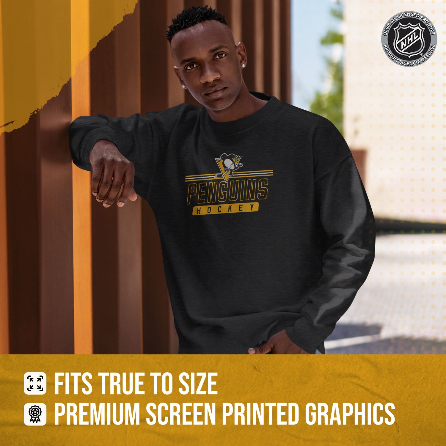 Score with Team Fan Apparel, the ultimate destination for officially licensed NHL apparel for men and women. Designed and printed in the USA, we use only the highest quality screen printing techniques to bring you the most comfortable, durable, and stylish clothing possible. Go ahead and show your team pride at the big game or any time! This premium crewneck fits both male and female adults and comes in small, medium, large, XL, and XXL. So needless to say, it fits Pittsburgh Penguins fans of all types! Maybe you aren't a Penguins fan but you know someone who is? Don't worry! This high-quality crewneck is soft, lightweight, breathable, and a GREAT gift for any birthday, anniversary, Father's Day, Mother's day, you name it! So, if you want to stand out as the #1 fan at the next big game or watch party, you're going to want to be wearing one of these hockey t-shirts.