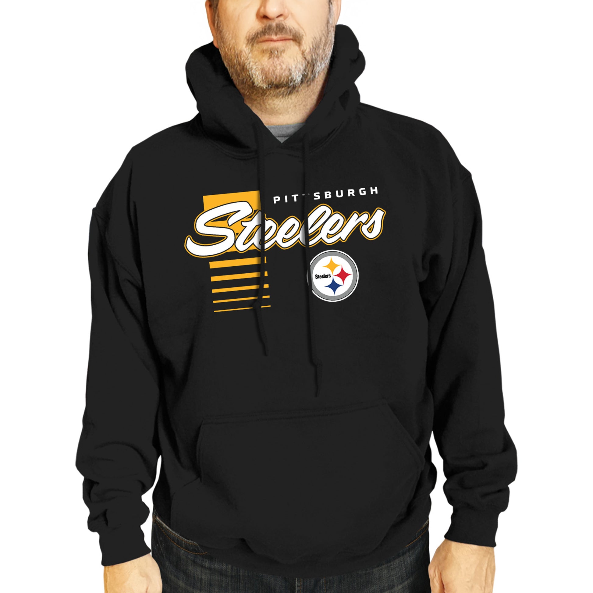 Pittsburgh Steelers NFL Adult Unisex Retro Script Ultra Soft Fleece Hooded Sweatshirt - Black