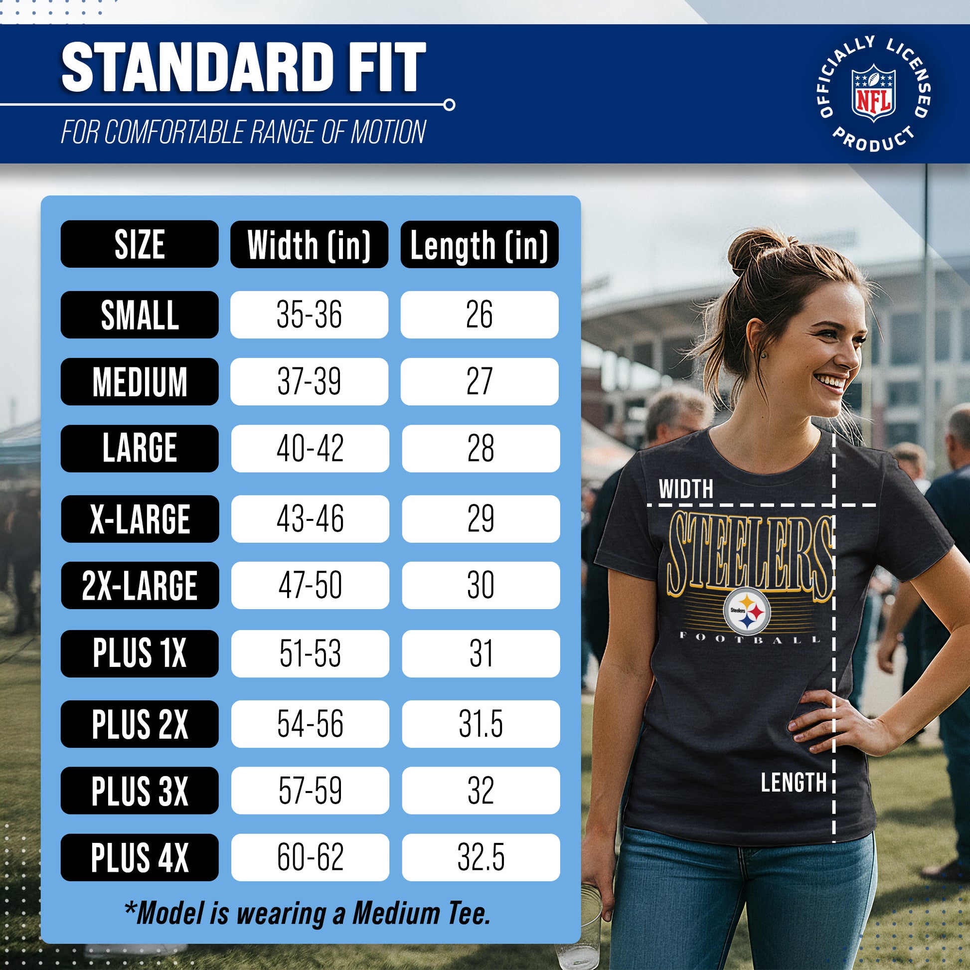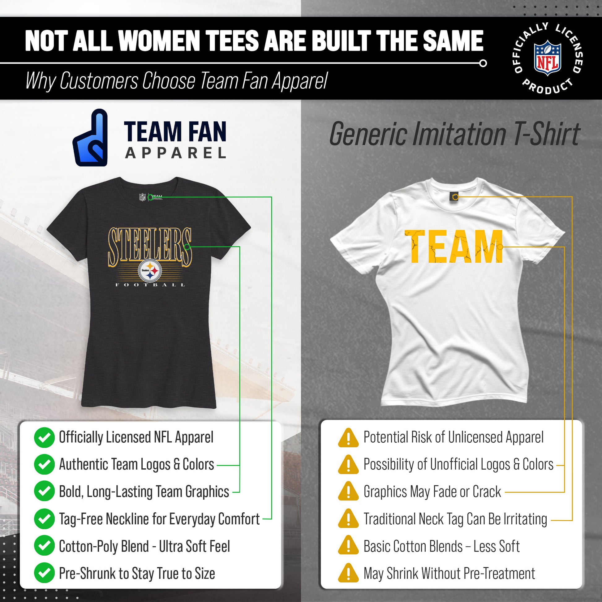 Calling all ladies! Get ready to rock game day with the Women's Team Fan Apparel Overtime Blueprint T-Shirt! This comfortable and stylish Pittsburgh Steelers womens tee is perfect for any female football fan, whether you're cheering on your favorite team at the stadium or watching from home. Made from a super soft cotton fabric , this shirt will keep you cool and comfortable all game long. The text, logo and official team color adds a touch of retro flair, while the tag-less design ensures itch-free wear. Whether you're a die-hard fan or just love a good classic look, this shirt is perfect for showing off your team spirit. Available in a wide range of women's sizes, it's suitable for all shapes and sizes! So grab your girlfriends and get ready to cheer on your team in style with the Women's Team Fan Apparel Overtime Blueprint T-Shirt!