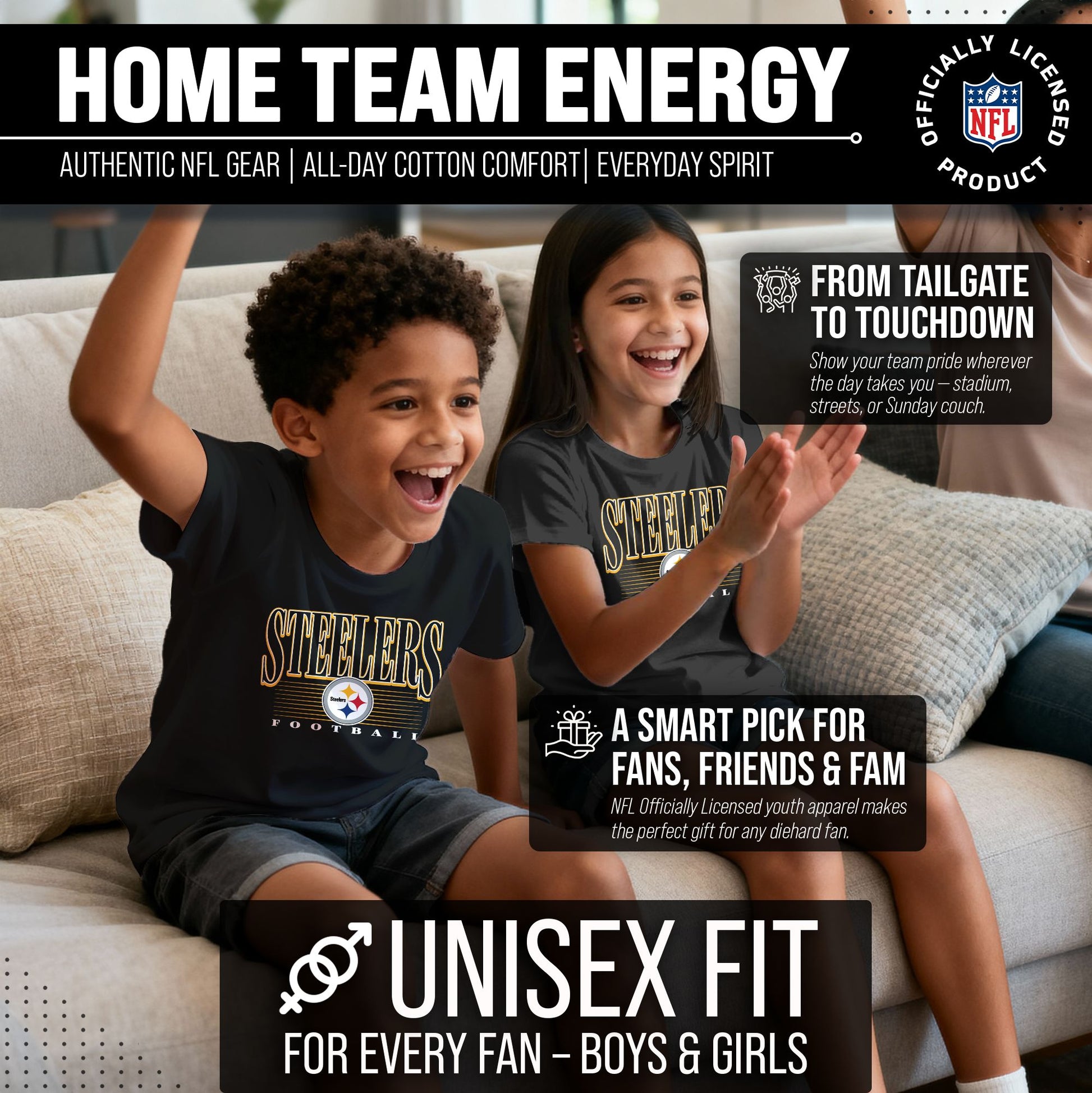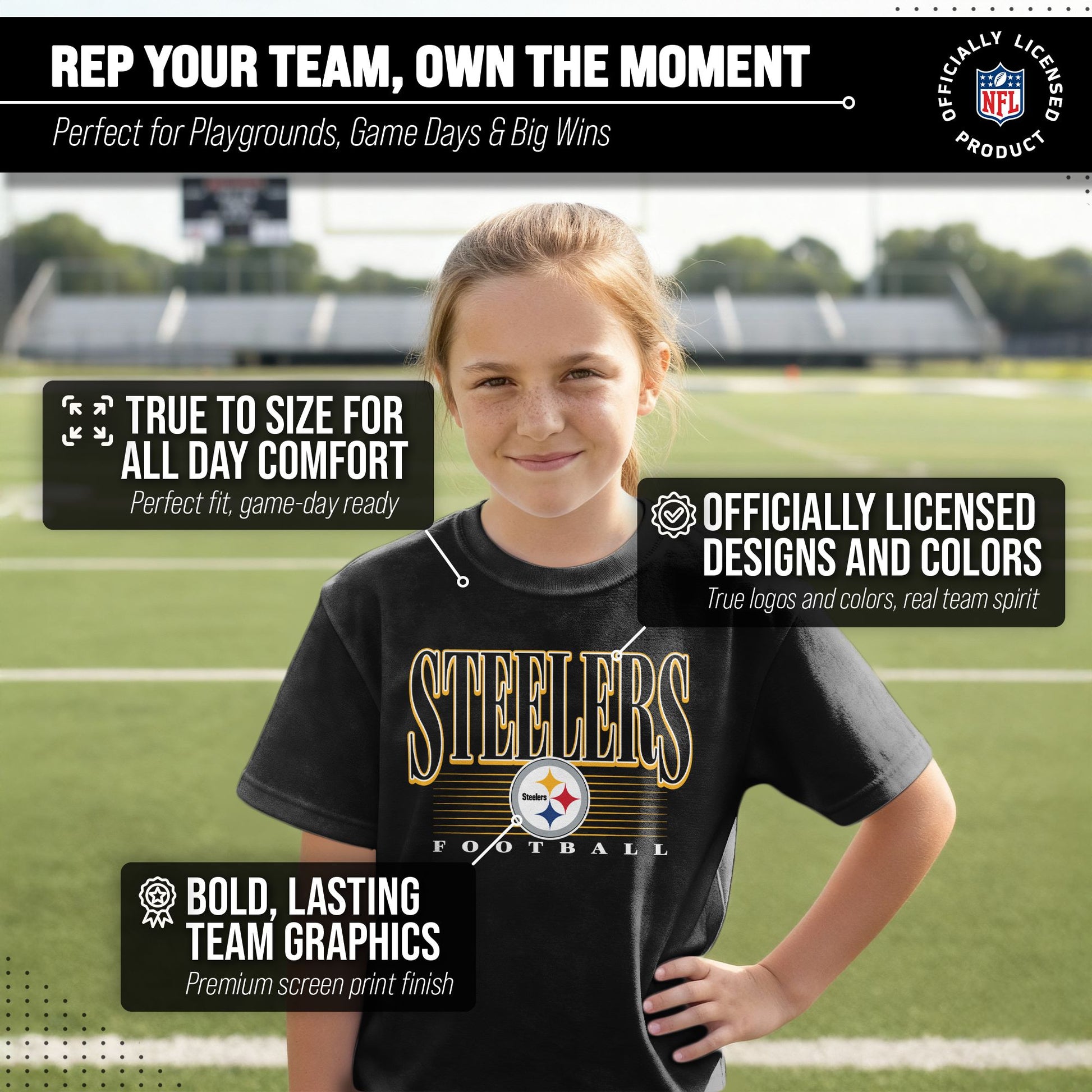 Pittsburgh Steelers NFL Youth Overtime Blueprint Football T-Shirt Unisex Tag Free Comfortable - Black