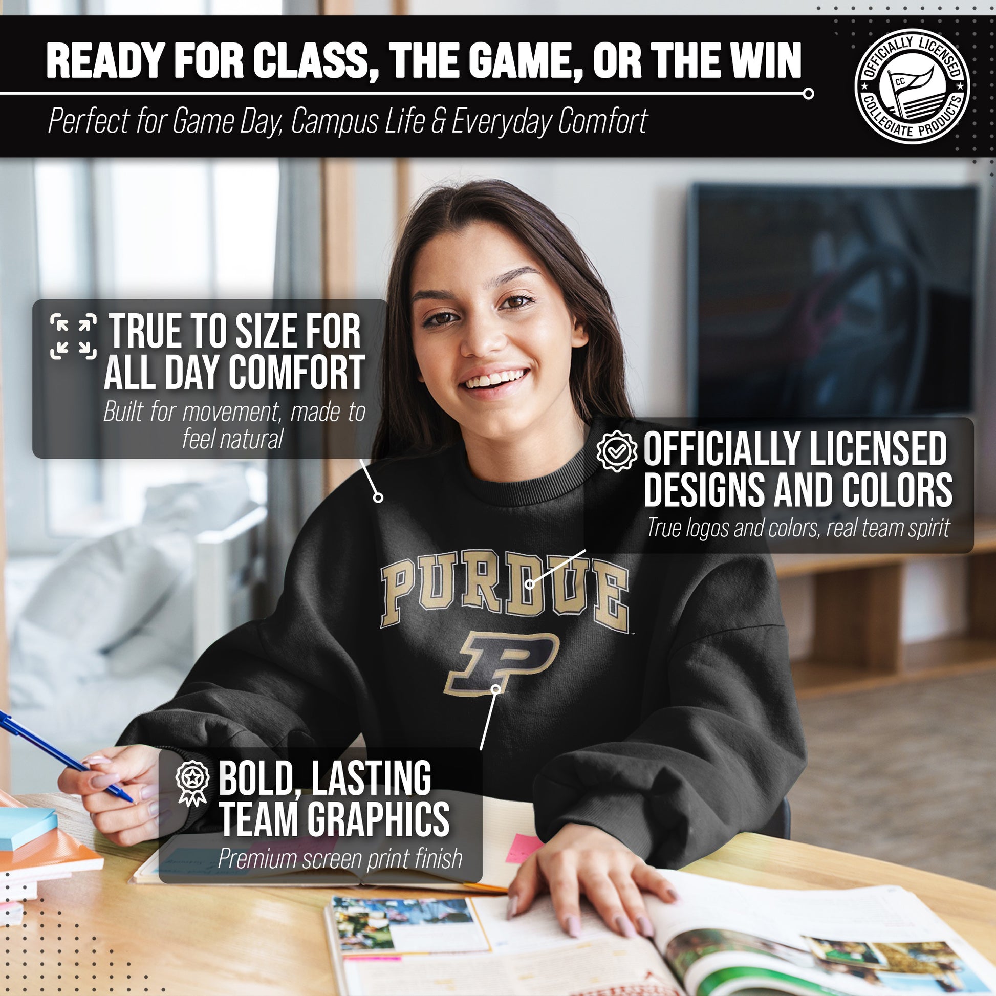 You know what's better than a perfect game? Scoring the best merch! Go ahead and show your team pride at the big game or any time! This premium-quality Gameday crew pullover is super comfy, fits both male and female adults, and comes in small, medium, large, XL, and XXL. So needless to say, it fits Purdue Boilermakers fans of all types! Maybe you aren't a Purdue fan but you know someone who is? Don't worry! This high-quality design machine washable unisex fit crew is perfect for anyone who loves their team. We use only the highest quality screen printing techniques to bring you the most comfortable, durable, and stylish team apparel possible. It doesn't matter if your headed to the next big game or just hanging out at home, the love of your favorite team never stops. So, make sure the everyone know who's the number one team you support. Our crew sweatshirts make the perfect gift for Father's Day, birthdays, Christmas, and more.